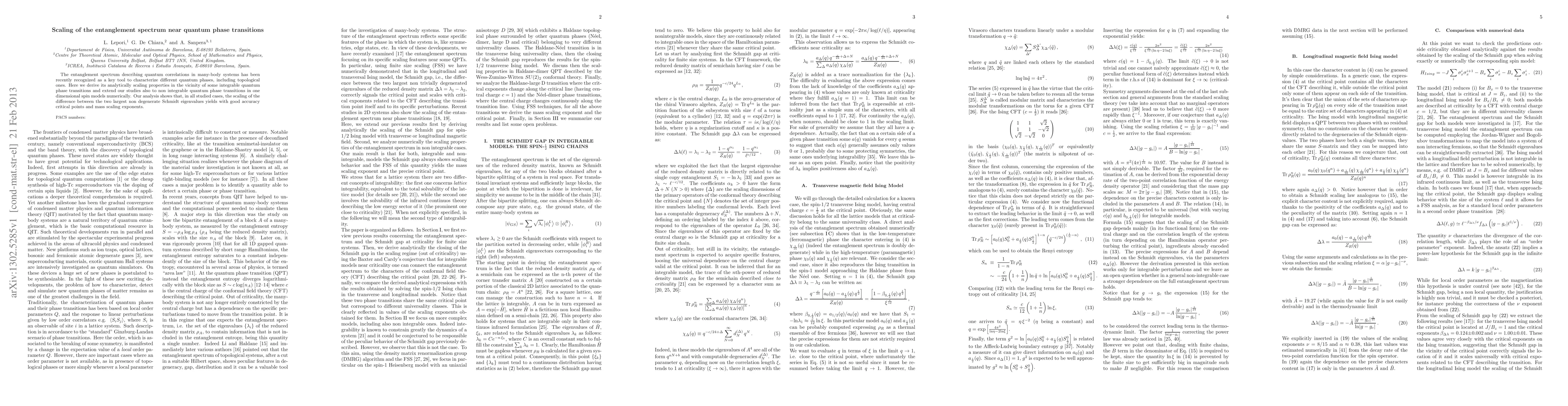 The paper presents analytical derivations for the scaling of the Schmidt gap in various quantum phase transitions, confirming its effectiveness as an order parameter and providing a method to compute critical exponents with good precision.