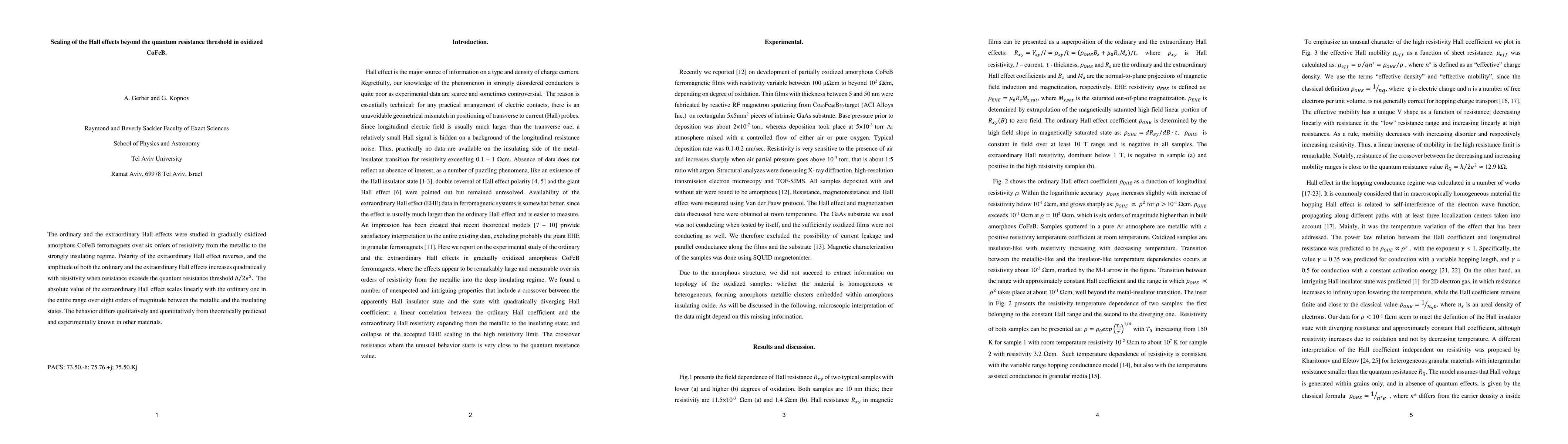This study investigates the Hall effects in oxidized CoFeB ferromagnets, revealing a quadratic increase in both ordinary and extraordinary Hall effects' amplitudes beyond the quantum resistance threshold. The extraordinary Hall effect's polarity reverses, and its absolute value scales linearly with the ordinary Hall effect across eight orders of magnitude, differing from predictions in other materials.