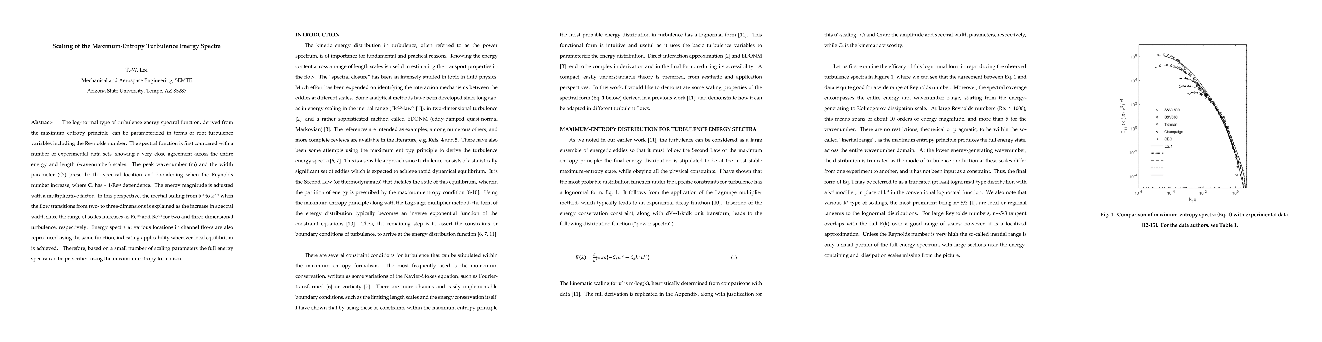 This paper demonstrates that the maximum-entropy turbulence energy spectral function, derived from the maximum entropy principle, scales well with experimental data across various energy and length scales. The function is parameterizable using root turbulence variables, including the Reynolds number, and explains inertial scaling transitions from two- to three-dimensional turbulence.