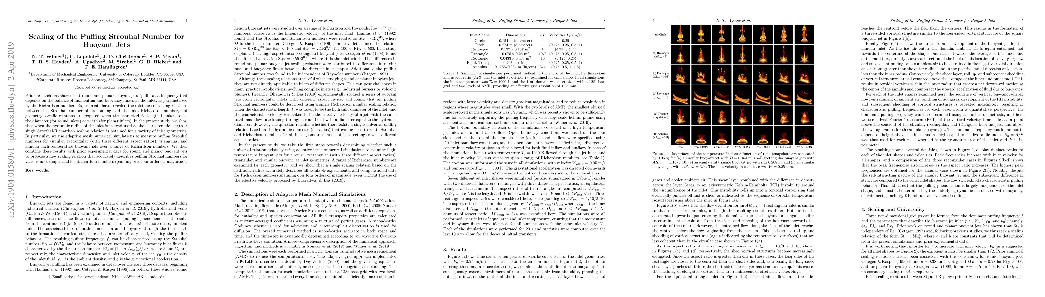 Prior research has shown that round and planar buoyant jets "puff" at a frequency that depends on the balance of momentum and buoyancy fluxes at the inlet, as parametrized by the Richardson number. Experiments have revealed the existence of scaling relations between the Strouhal number of the puffing and the inlet Richardson number, but geometry-specific relations are required when the characteristic length is taken to be the diameter (for round inlets) or width (for planar inlets). In the present study, we show that when the hydraulic radius of the inlet is instead used as the characteristic length, a single Strouhal-Richardson scaling relation is obtained for a variety of inlet geometries. In particular, we use adaptive mesh numerical simulations to measure puffing Strouhal numbers for circular, rectangular (with three different aspect ratios), triangular, and annular high-temperature buoyant jets over a range of Richardson numbers. We then combine these results with prior experimental data for round and planar buoyant jets to propose a new scaling relation that accurately describes puffing Strouhal numbers for various inlet shapes and for Richardson numbers spanning over four orders of magnitude.