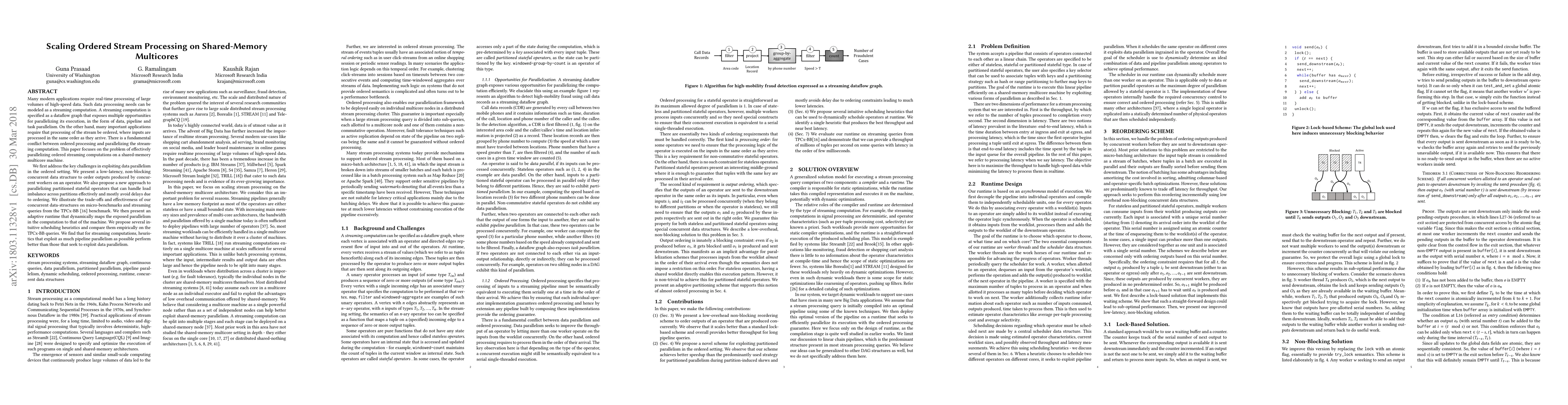 This paper addresses the challenge of parallelizing ordered streaming computations on shared-memory multicores by introducing non-blocking concurrent data structures and adaptive runtime scheduling heuristics. The proposed methods effectively manage load imbalance and latency, outperforming data-parallelism focused heuristics in pipeline parallelism-oriented streaming computations.
