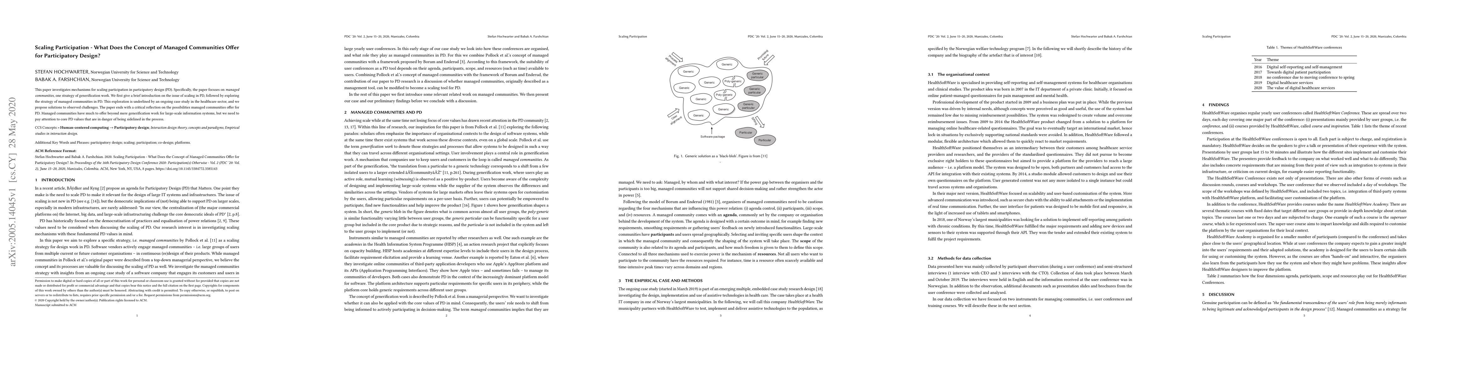 This paper explores the concept of managed communities as a strategy for scaling participation in participatory design, highlighting its potential benefits and challenges in large-scale information systems.