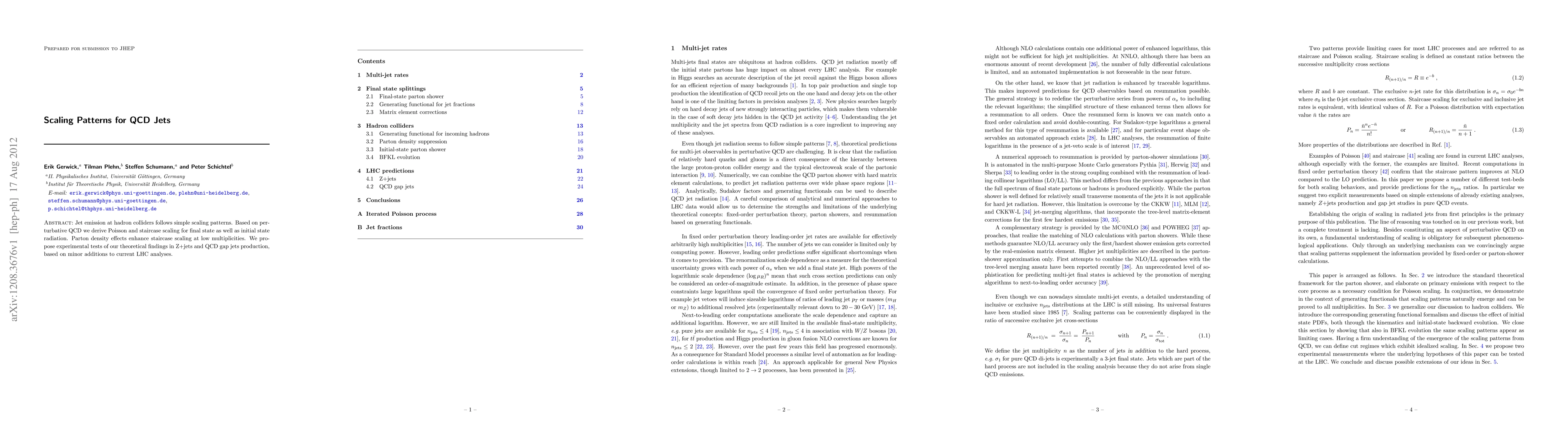 Jet emission at hadron colliders follows simple scaling patterns. Based on perturbative QCD we derive Poisson and staircase scaling for final state as well as initial state radiation. Parton density effects enhance staircase scaling at low multiplicities. We propose experimental tests of our theoretical findings in Z+jets and QCD gap jets production based on minor additions to current LHC analyses.