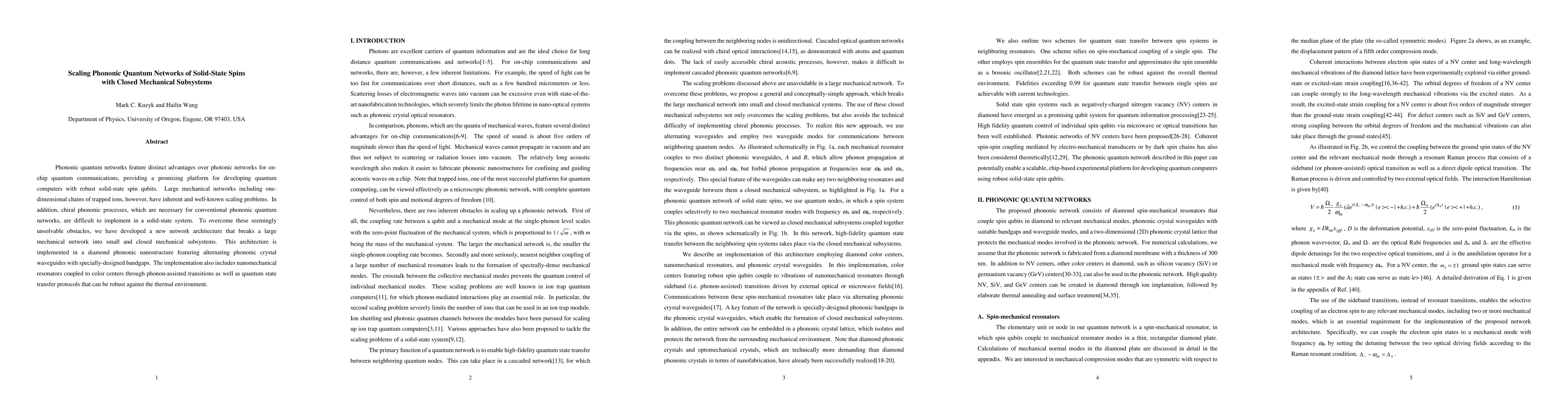 This paper proposes a novel architecture for scaling phononic quantum networks using closed mechanical subsystems in diamond phononic nanostructures. This approach addresses the scaling issues and implementation difficulties of chiral phononic processes in solid-state spin qubits, enabling robust quantum communication.