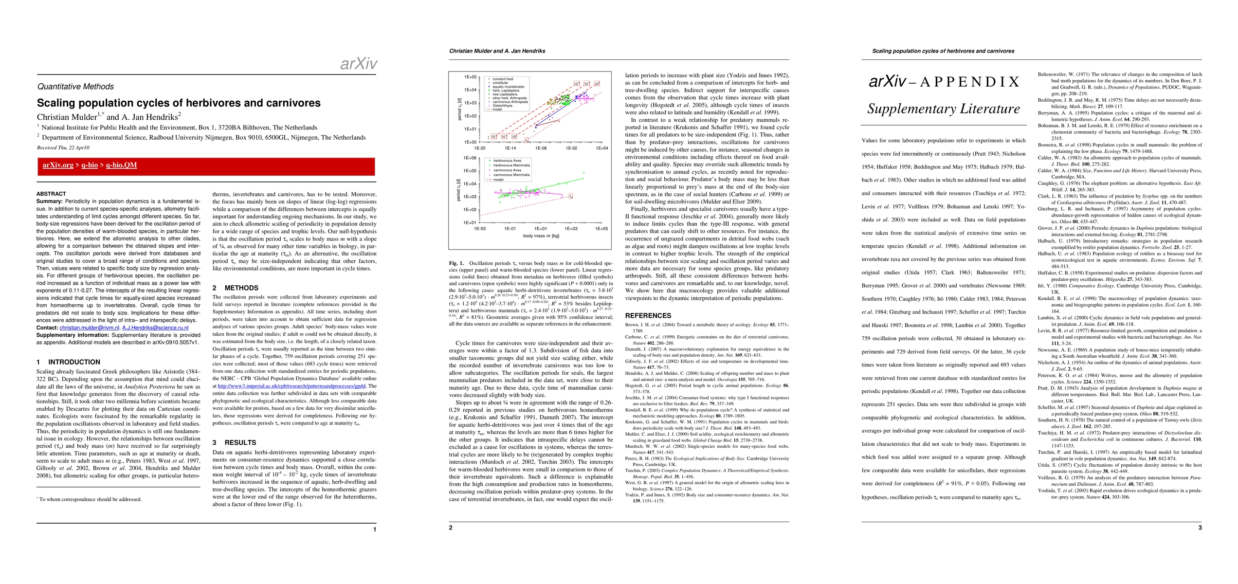 Periodicity in population dynamics is a fundamental issue. In addition to current species-specific analyses, allometry facilitates understanding of limit cycles amongst different species. So far, body-size regressions have been derived for the oscillation period of the population densities of warm-blooded species, in particular herbivores. Here, we extend the allometric analysis to other clades, allowing for a comparison between the obtained slopes and intercepts. The oscillation periods were derived from databases and original studies to cover a broad range of conditions and species. Then, values were related to specific body size by regression analysis. For different groups of herbivorous species, the oscillation period increased as a function of individual mass as a power law with exponents of 0.11-0.27. The intercepts of the resulting linear regressions indicated that cycle times for equally-sized species increased from homeotherms up to invertebrates. Overall, cycle times for predators did not scale to body size. Implications for these differences were addressed in the light of intra- and interspecific delays.