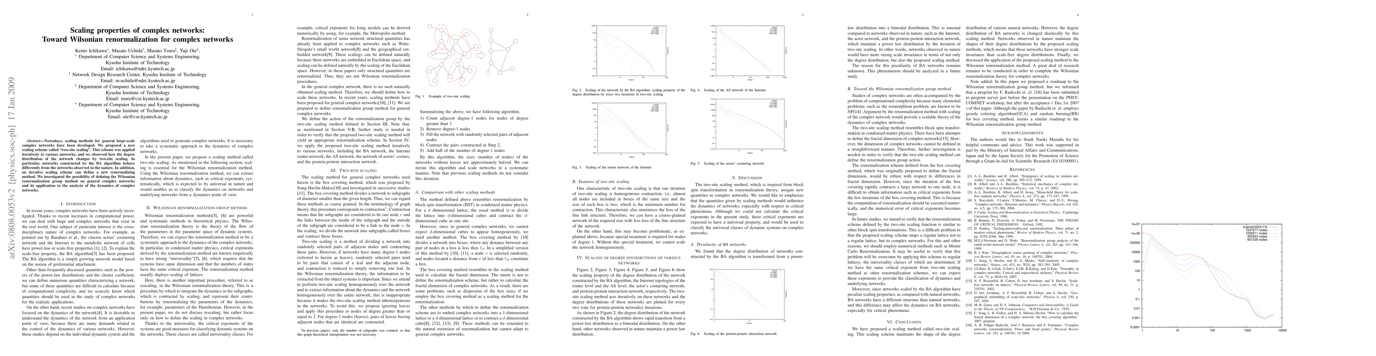 This paper proposes a new "two-site scaling" scheme for analyzing large-scale complex networks, observing changes in degree distribution through iterative scaling. It explores the potential for defining a Wilsonian renormalization group method on these networks to analyze their dynamics.