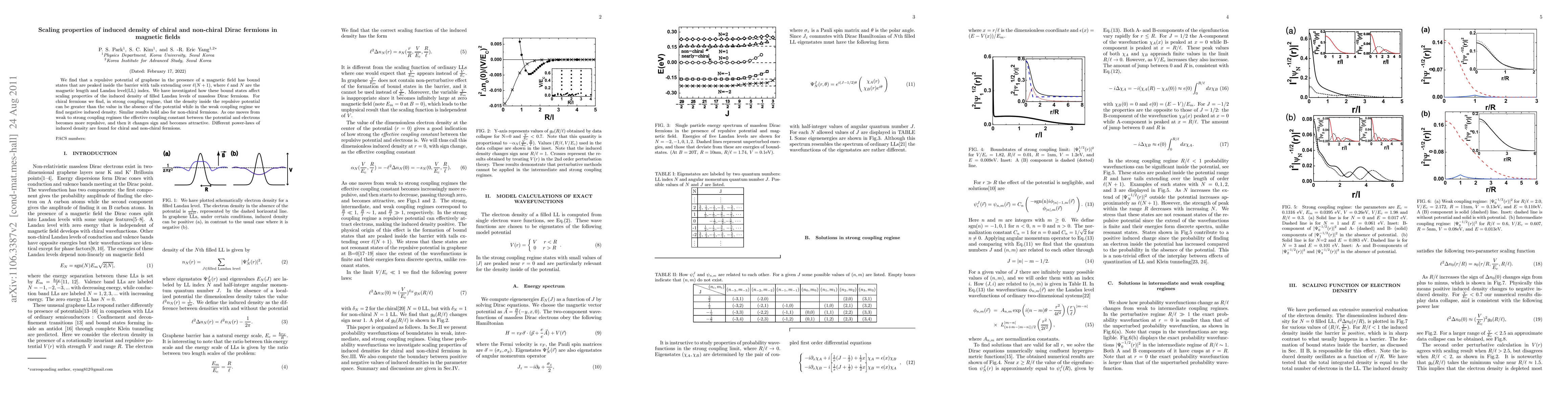 This paper investigates the scaling properties of induced density in graphene under a magnetic field, revealing that bound states within a repulsive potential exhibit different behaviors for chiral and non-chiral fermions. In strong coupling, chiral fermions show a greater induced density inside the potential, while in weak coupling, both chiral and non-chiral fermions can exhibit negative induced density.