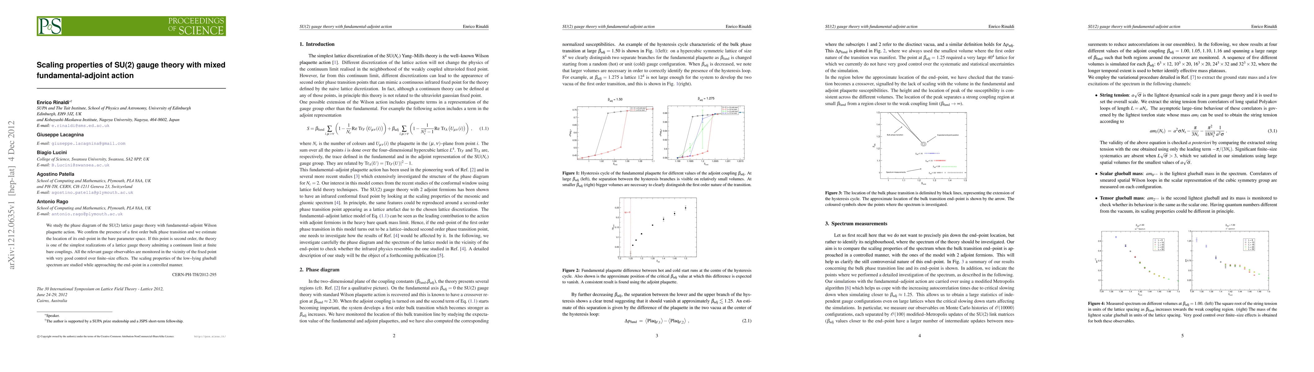 We study the phase diagram of the SU(2) lattice gauge theory with fundamental-adjoint Wilson plaquette action. We confirm the presence of a first order bulk phase transition and we estimate the location of its end-point in the bare parameter space. If this point is second order, the theory is one of the simplest realizations of a lattice gauge theory admitting a continuum limit at finite bare couplings. All the relevant gauge observables are monitored in the vicinity of the fixed point with very good control over finite-size effects. The scaling properties of the low-lying glueball spectrum are studied while approaching the end-point in a controlled manner.