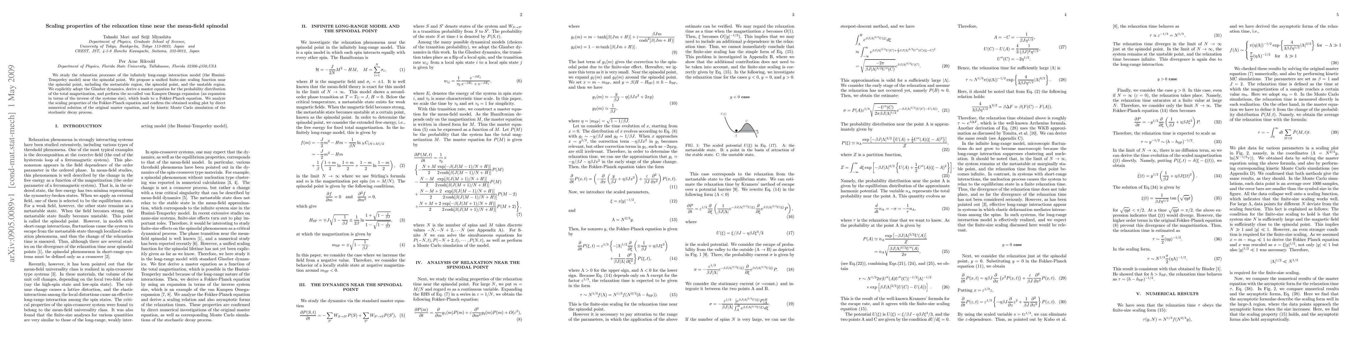 We study the relaxation processes of the infinitely long-range interaction model (the Husimi-Temperley model) near the spinodal point. We propose a unified finite-size scaling function near the spinodal point, including the metastable region, the spinodal point, and the unstable region. We explicitly adopt the Glauber dynamics, derive a master equation for the probability distribution of the total magnetization, and perform the so-called van Kampen Omega expansion (an expansion in terms of the inverse of the systems size), which leads to a Fokker-Planck equation. We analyze the scaling properties of the Fokker-Planck equation and confirm the obtained scaling plot by direct numerical solution of the original master equation, and by kinetic Monte Carlo simulation of the stochastic decay process.
