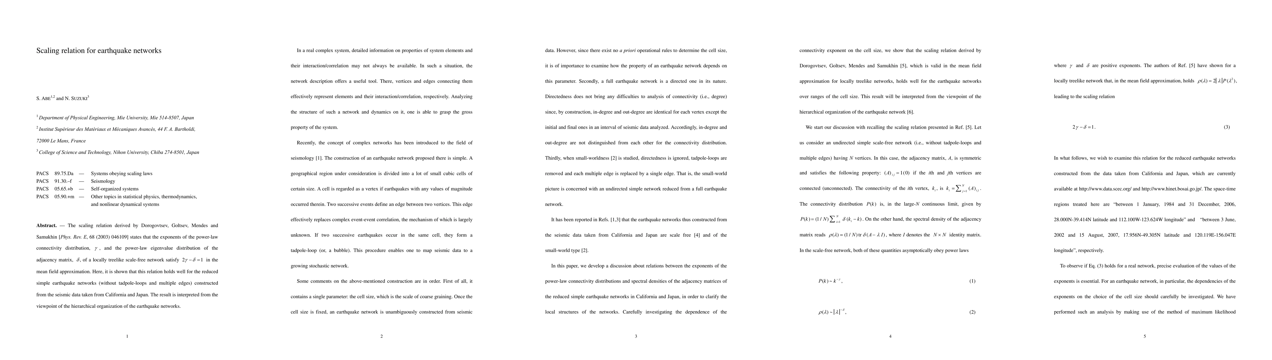 This paper demonstrates that the scaling relation for locally treelike scale-free networks, originally derived for general networks, holds true for simplified earthquake networks from California and Japan. The findings support the hierarchical organization interpretation of these networks.