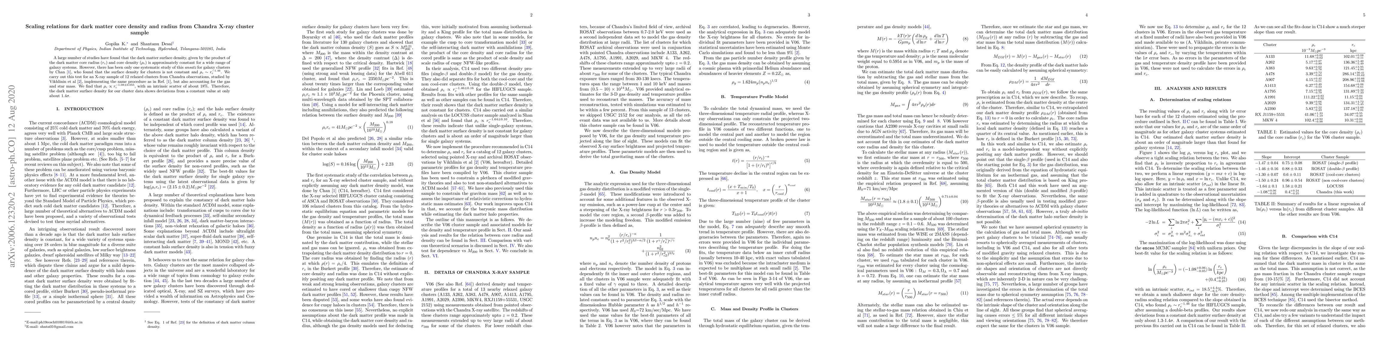 This research analyzes 12 relaxed galaxy clusters from Chandra X-ray observations, finding that the dark matter core density multiplied by radius ($ ho_c r_c$) doesn't remain constant, but follows a power-law relation $ ho_c propto r_c^{-1.08 pm 0.055}$ with an 18% scatter. This indicates deviations from a constant surface density at roughly 1.4$sigma$.