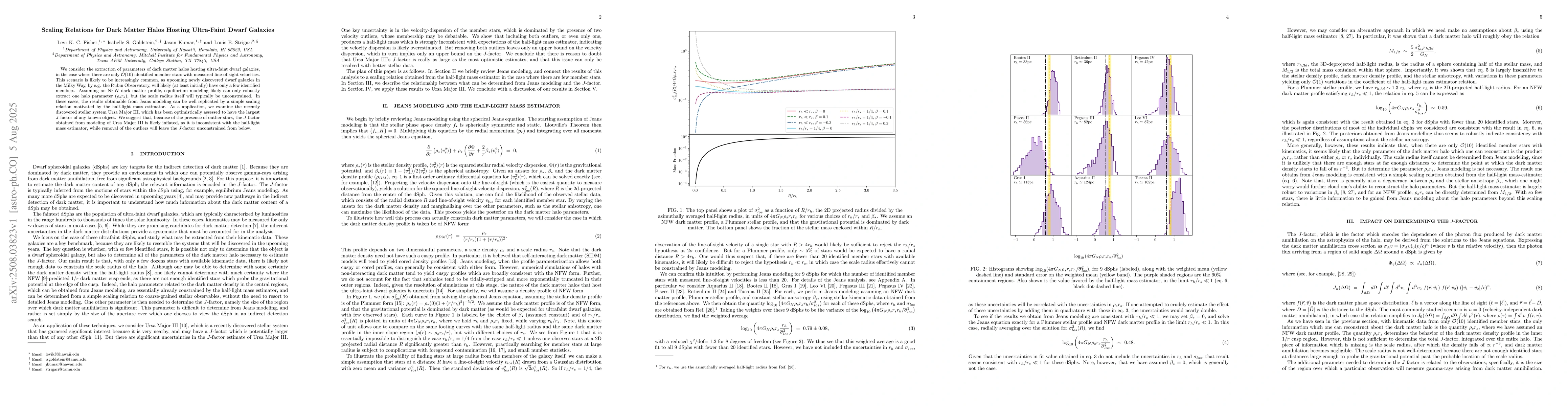 We consider the extraction of parameters of dark matter halos hosting ultra-faint dwarf galaxies, in the case where there are only ${\cal O}(10)$ identified member stars with measured line-of-sight velocities. This scenario is likely to be increasingly common, as upcoming newly discovered dwarf galaxies in the Milky Way, by e.g. the Rubin Observatory, will likely (at least initially) have only a few identified members. Assuming an NFW dark matter profile, equilibrium modeling likely can only robustly extract one halo parameter ($\rho_s r_s$), but the scale radius itself will typically be unconstrained. In these cases, the results obtainable from Jeans modeling can be well replicated by a simple scaling relation motivated by the half-light mass estimator. As a application, we examine the recently discovered stellar system Ursa Major III, which has been optimistically assessed to have the largest $J$-factor of any known object. We suggest that, because of the presence of outlier stars, the $J$-factor obtained from modeling of Ursa Major III is likely inflated, as it is inconsistent with the half-light mass estimator, while removal of the outliers will leave the $J$-factor unconstrained from below.
