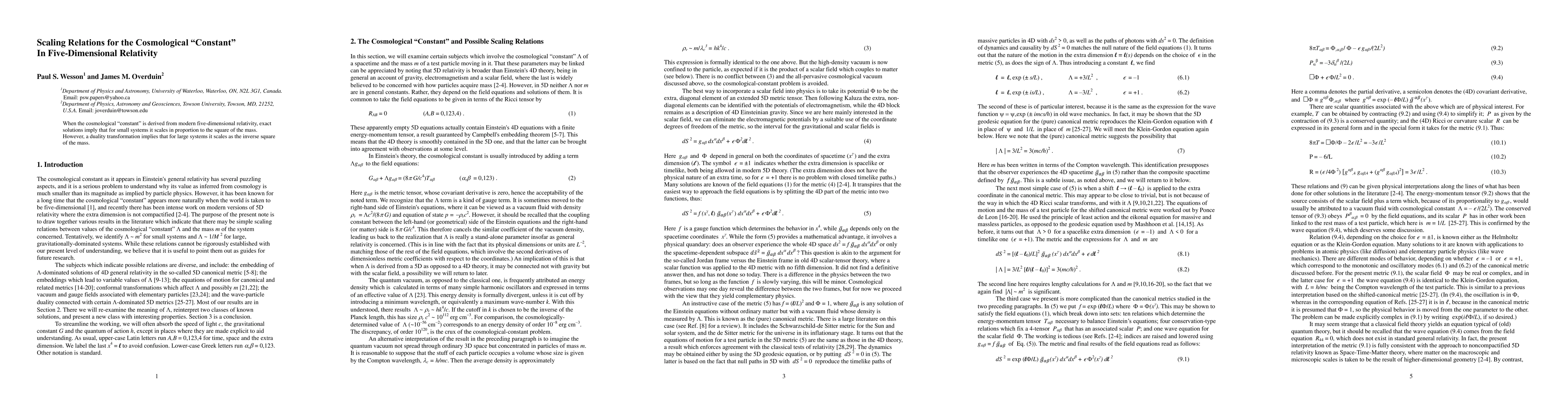 Summary: This paper explores the scaling behavior of the cosmological "constant" in five-dimensional relativity, showing it scales with the square of mass for small systems, while for large systems, it scales inversely with the square of the mass due to a duality transformation.