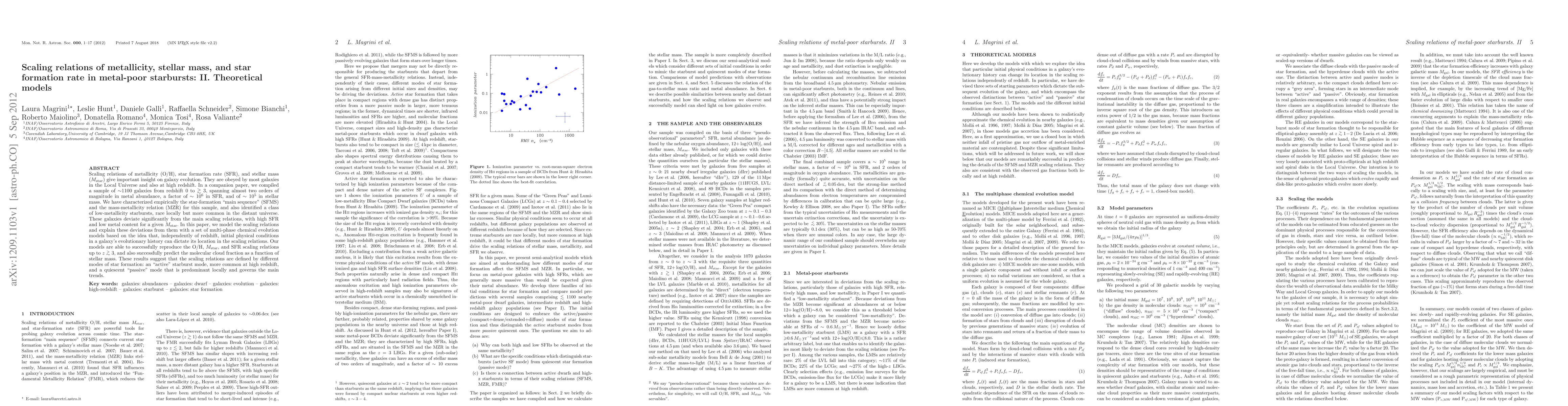 This paper models the scaling relations between metallicity, stellar mass, and star formation rate in metal-poor starbursts, showing that initial physical conditions dictate galaxy evolution. The models reproduce the observed scaling relations up to z~3 and suggest two star formation modes: an active starburst mode at high redshift and a passive mode governing local trends.