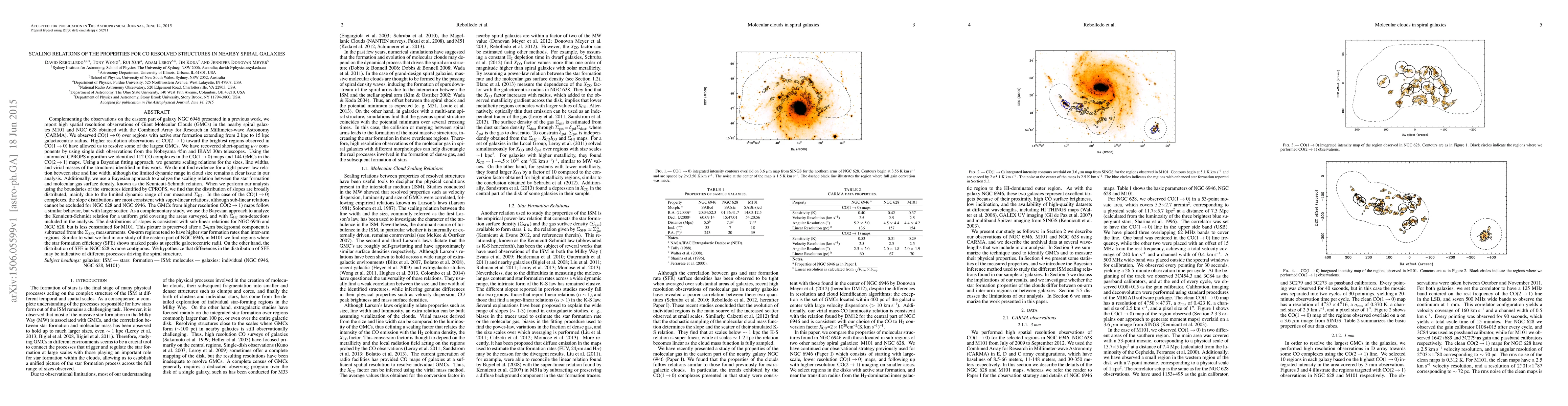 Researchers studied giant molecular clouds in nearby spiral galaxies, finding that they have varying sizes, line widths, and star formation efficiencies, suggesting different processes drive the spiral structure.