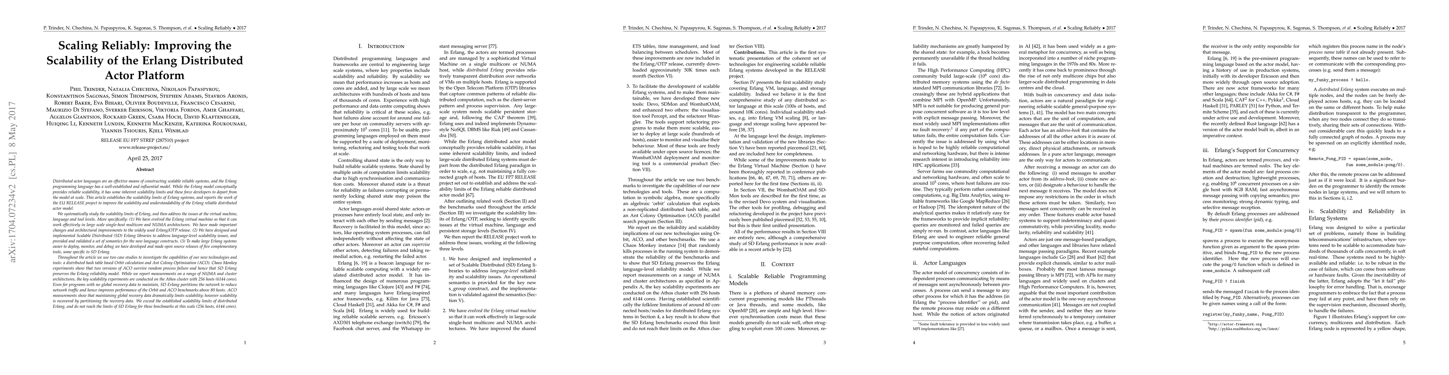 This paper investigates the scalability limitations of Erlang's distributed actor model and proposes improvements at the virtual machine, language, and tool levels to enhance scalability. The authors introduce Scalable Distributed Erlang libraries and new tools to facilitate deployment, monitoring, and debugging, demonstrating significant performance improvements in large-scale systems through case studies.