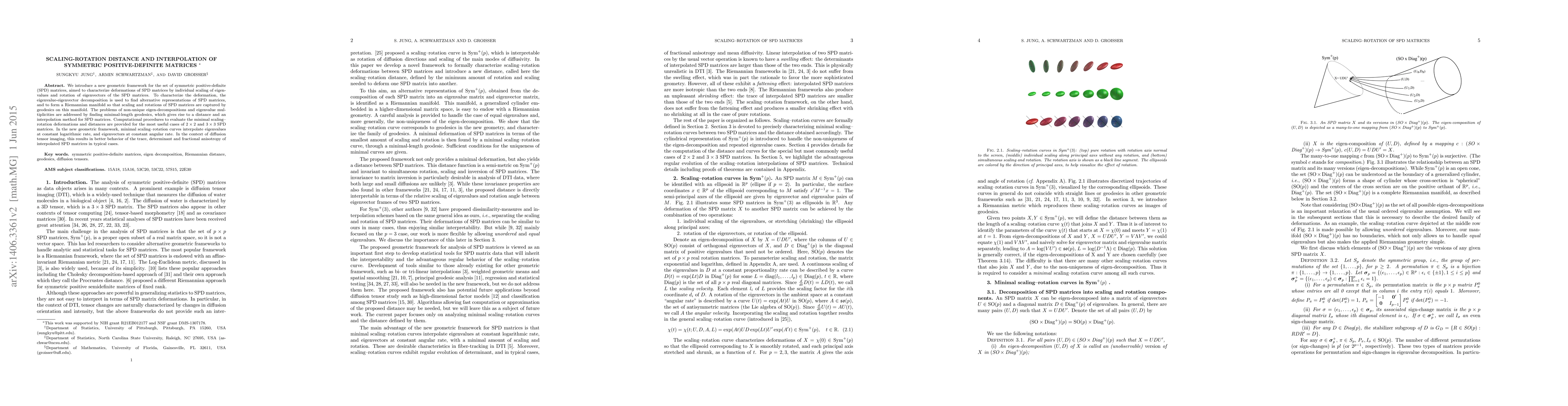 This paper introduces a geometric framework for symmetric positive-definite matrices, using scaling and rotation to characterize deformations. It provides minimal-length geodesics for unique representations, enabling distance and interpolation methods, and demonstrates improved behavior in diffusion tensor imaging applications.