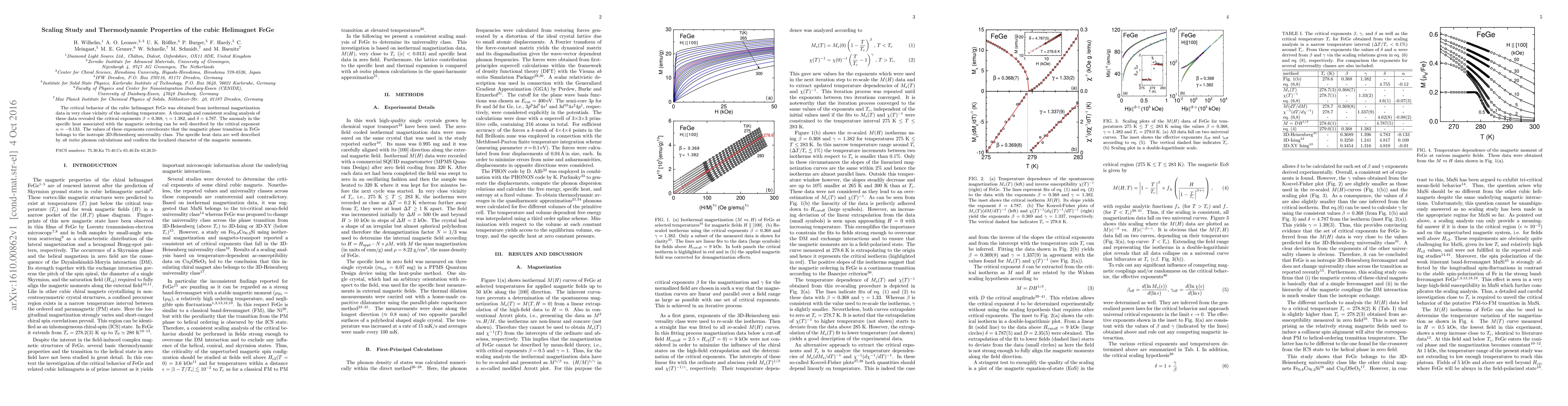 Researchers studied FeGe, a cubic helimagnet, and found its magnetic phase transition conforms to 3D-Heisenberg universality class with exponents “typically” reported for such systems. The data also confirm the localized character of the magnetic moments.
