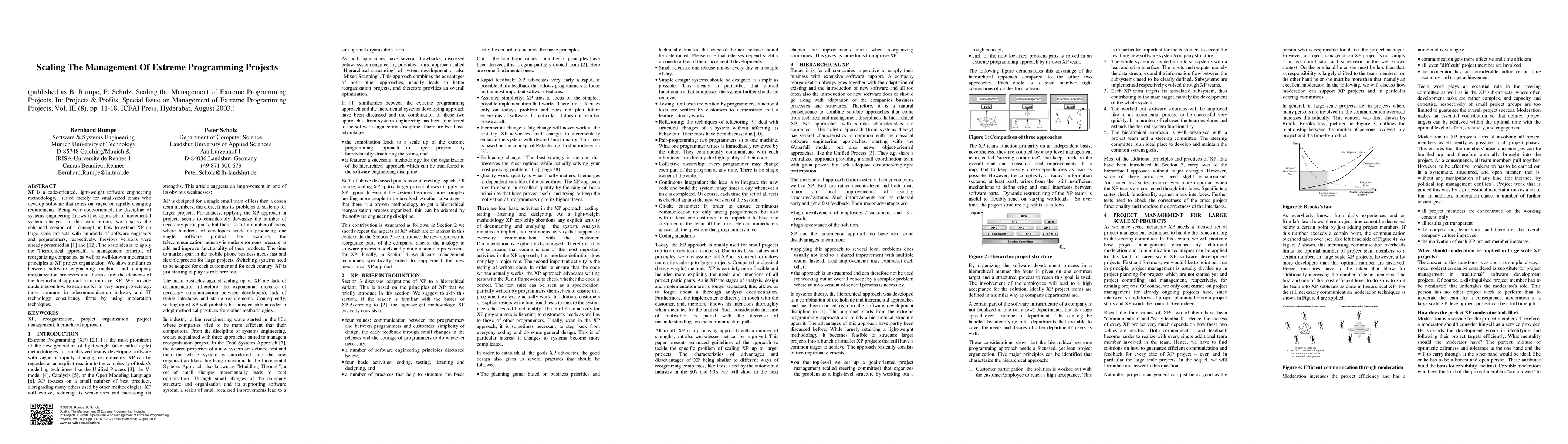 XP is a code-oriented, light-weight software engineering methodology, suited merely for small-sized teams who develop software that relies on vague or rapidly changing requirements. Being very code-oriented, the discipline of systems engineering knows it as approach of incremental system change. In this contribution, we discuss the enhanced version of a concept on how to extend XP on large scale projects with hundreds of software engineers and programmers, respectively. Previous versions were already presented in [1] and [12]. The basic idea is to apply the "hierarchical approach", a management principle of reorganizing companies, as well as well-known moderation principles to XP project organization. We show similarities between software engineering methods and company reorganization processes and discuss how the elements of the hierarchical approach can improve XP. We provide guidelines on how to scale up XP to very large projects e.g. those common in telecommunication industry and IT technology consultancy firms by using moderation techniques.