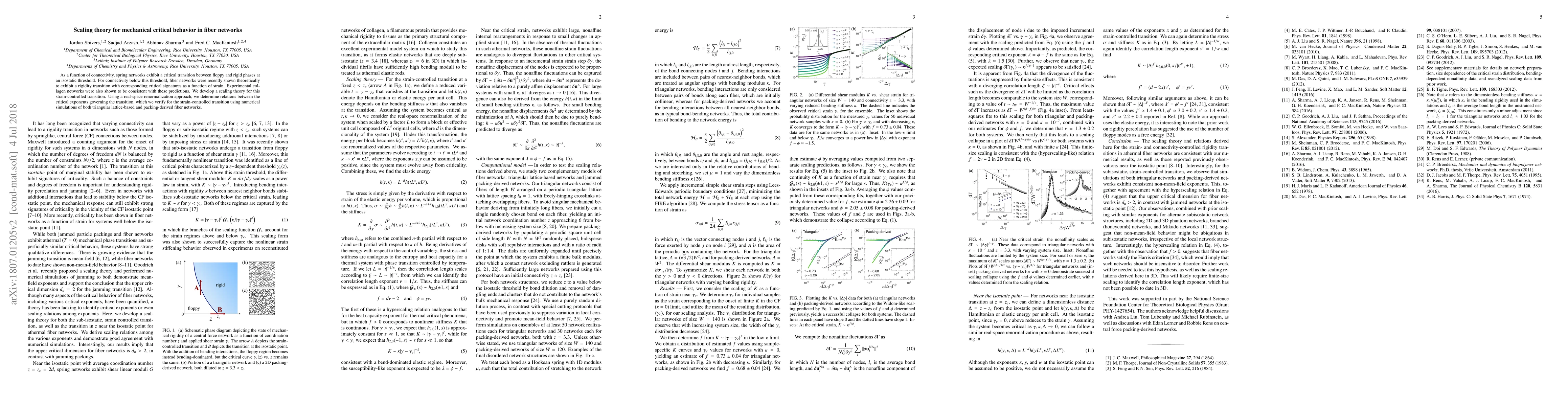 This paper develops a scaling theory for mechanical critical behavior in fiber networks, identifying critical signatures of a rigidity transition as a function of strain and verifying these relations through numerical simulations of various fiber network models. The study confirms theoretical predictions with experimental observations of collagen networks.