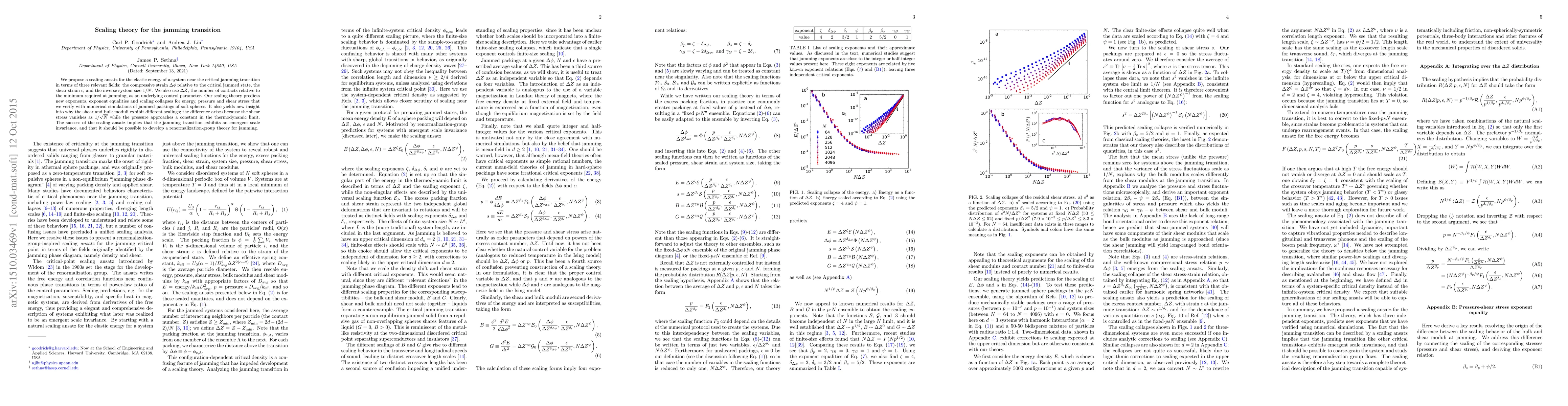 This paper proposes a scaling theory for the jamming transition, introducing a scaling ansatz that predicts new exponents and scaling behaviors for energy, pressure, and shear stress, verified through simulations of jammed packings. The theory reveals why shear and bulk moduli scale differently, highlighting emergent scale invariance and suggesting a potential renormalization-group approach for jamming.