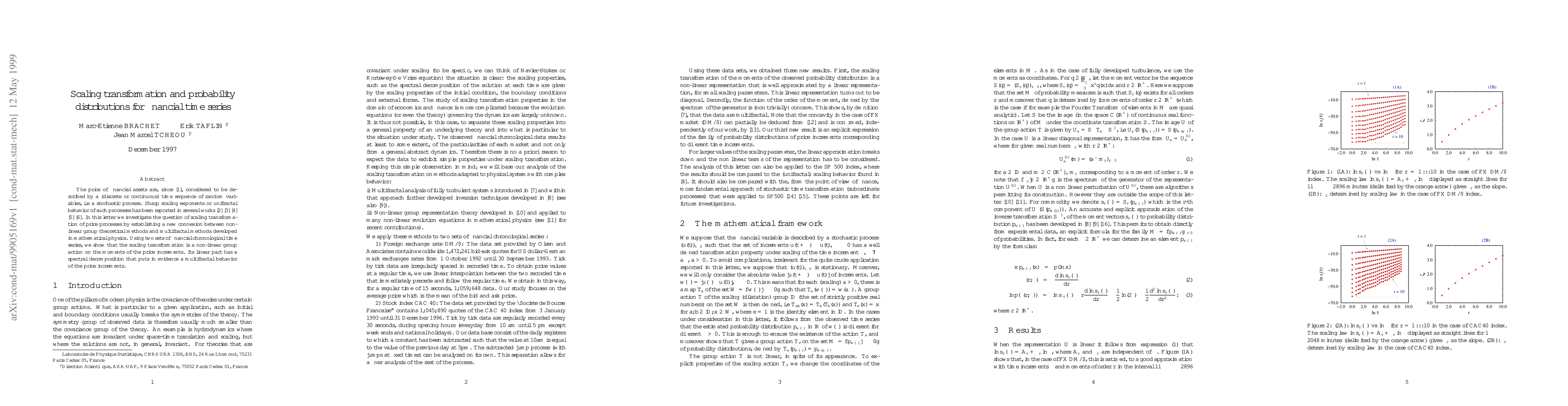 The price of financial assets are, since Bachelier, considered to be described by a (discrete or continuous) time sequence of random variables, i.e a stochastic process. Sharp scaling exponents or unifractal behavior of such processes has been reported in several works. In this letter we investigate the question of scaling transformation of price processes by establishing a new connexion between non-linear group theoretical methods and multifractal methods developed in mathematical physics. Using two sets of financial chronological time series, we show that the scaling transformation is a non-linear group action on the moments of the price increments. Its linear part has a spectral decomposition that puts in evidence a multifractal behavior of the price increments.