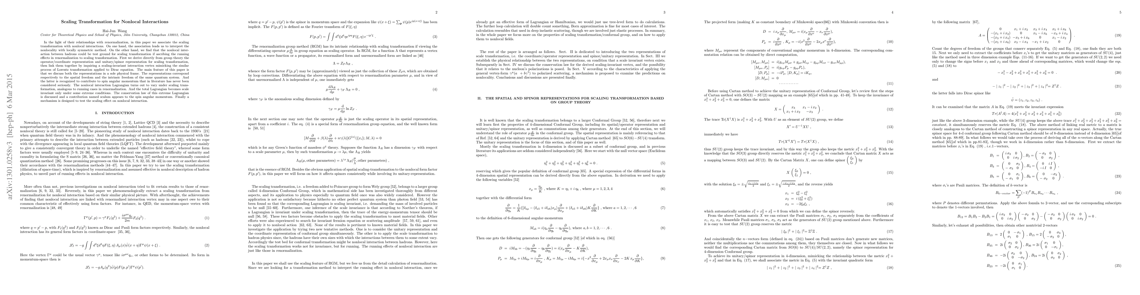 This paper explores the connection between scaling transformations and nonlocal interactions, deriving representations from group theory and linking them to reveal insights into hadron interactions. It introduces a novel contribution to spin angular momentum and proposes a mechanism to test the scaling effect on nonlocal interactions.