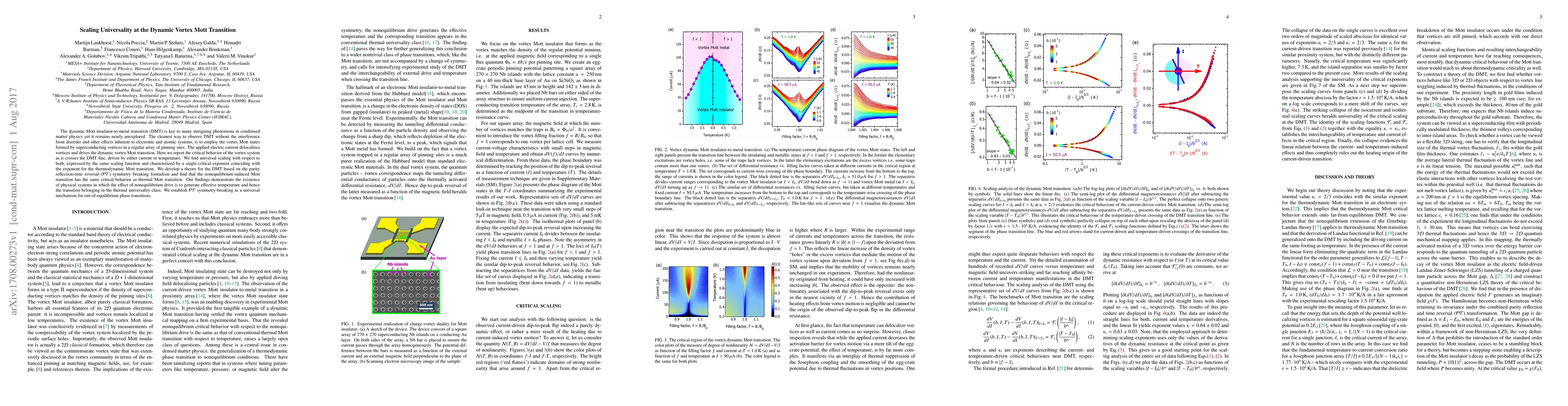 This paper investigates the dynamic Mott insulator-to-metal transition in superconducting vortex systems, revealing universal scaling behavior driven by electric current or temperature. The study finds that the nonequilibrium-induced transition shares critical behavior with thermal transitions, establishing parity-time symmetry breaking as a universal mechanism for out-of-equilibrium phase transitions.
