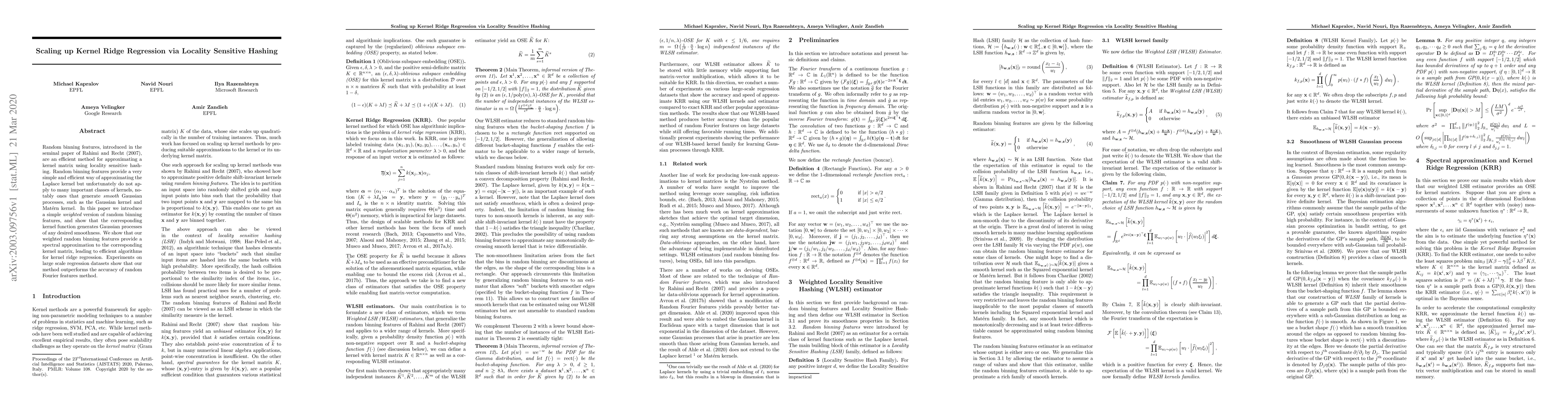 This paper proposes a weighted version of random binning features to efficiently approximate Gaussian kernels and other smooth kernels, enabling scalable kernel ridge regression. The method outperforms random Fourier features in accuracy on large datasets.