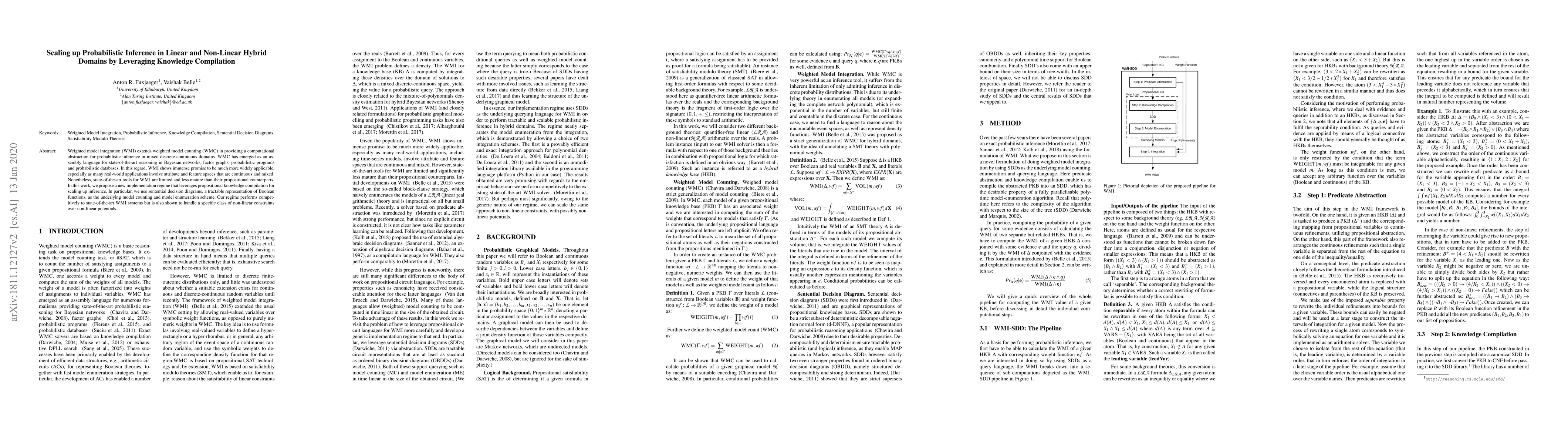 Weighted model integration (WMI) extends weighted model counting (WMC) in providing a computational abstraction for probabilistic inference in mixed discrete-continuous domains. WMC has emerged as an assembly language for state-of-the-art reasoning in Bayesian networks, factor graphs, probabilistic programs and probabilistic databases. In this regard, WMI shows immense promise to be much more widely applicable, especially as many real-world applications involve attribute and feature spaces that are continuous and mixed. Nonetheless, state-of-the-art tools for WMI are limited and less mature than their propositional counterparts. In this work, we propose a new implementation regime that leverages propositional knowledge compilation for scaling up inference. In particular, we use sentential decision diagrams, a tractable representation of Boolean functions, as the underlying model counting and model enumeration scheme. Our regime performs competitively to state-of-the-art WMI systems but is also shown to handle a specific class of non-linear constraints over non-linear potentials.