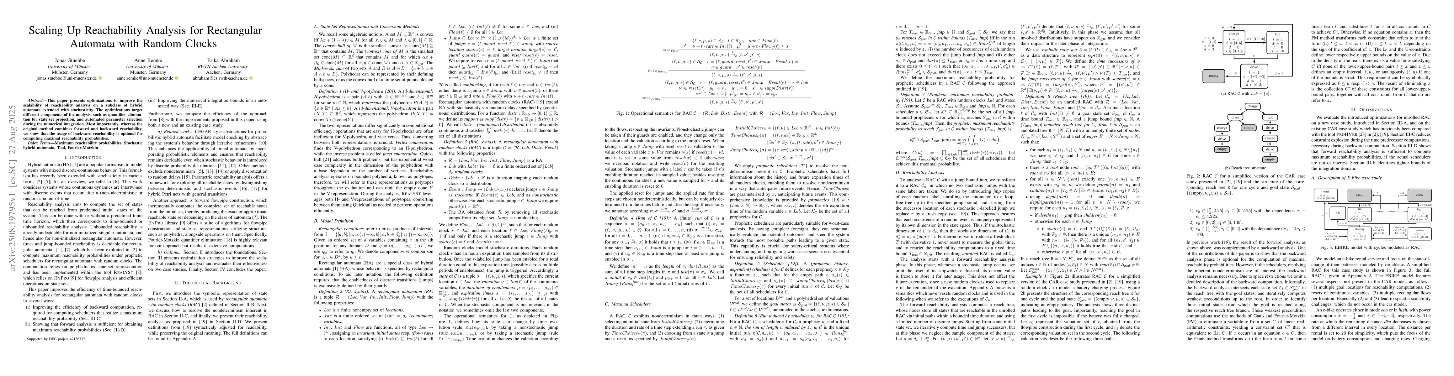 This paper presents optimizations to improve the scalability of reachability analysis on a subclass of hybrid automata extended with stochasticity. The optimizations target different components of the analysis, such as quantifier elimination for state set projection, and automated parameter selection during the numerical integration. Most importantly, whereas the original method combines forward and backward reachability, we show that the usage of backward reachability is optional for computing maximal reachability probabilities.