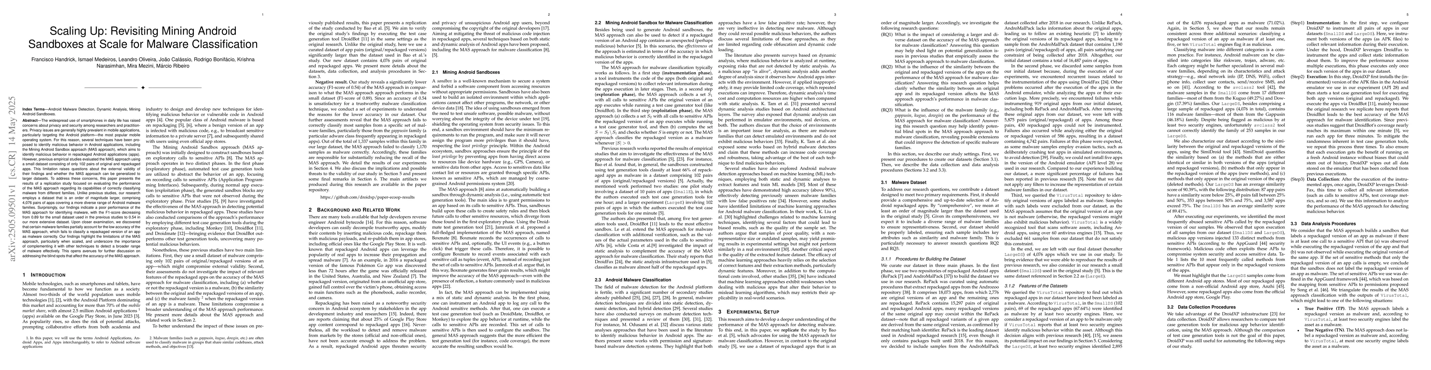 The paper's main technical contribution is the large-scale evaluation of the MAS approach, revealing its limitations when dealing with a diverse set of Android malware families.