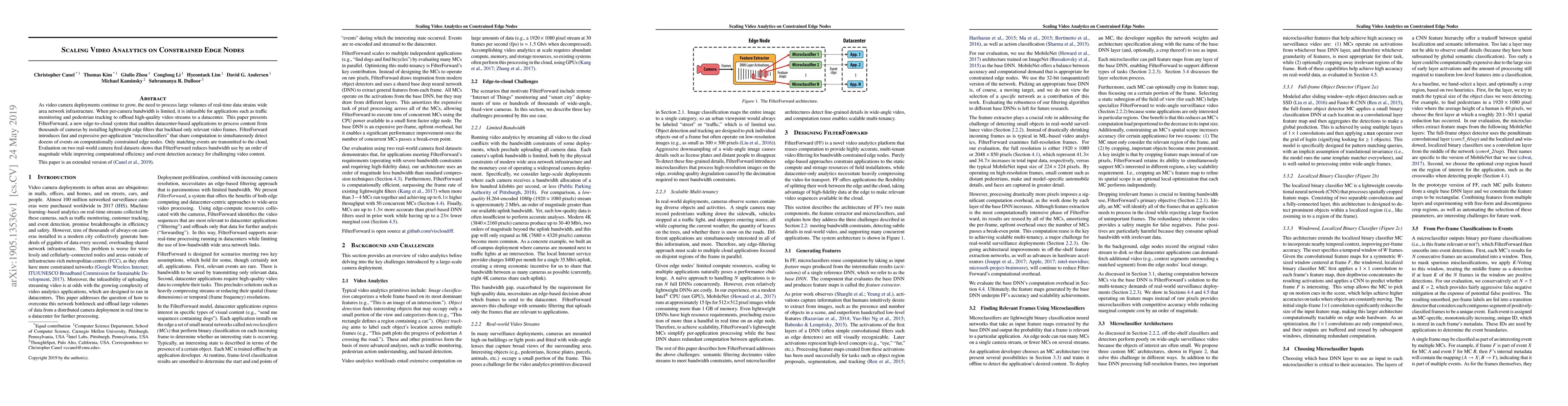 This paper introduces FilterForward, an edge-to-cloud system that processes video from thousands of cameras by using lightweight edge filters to transmit only relevant frames, significantly reducing bandwidth use and improving computational efficiency and event detection accuracy.