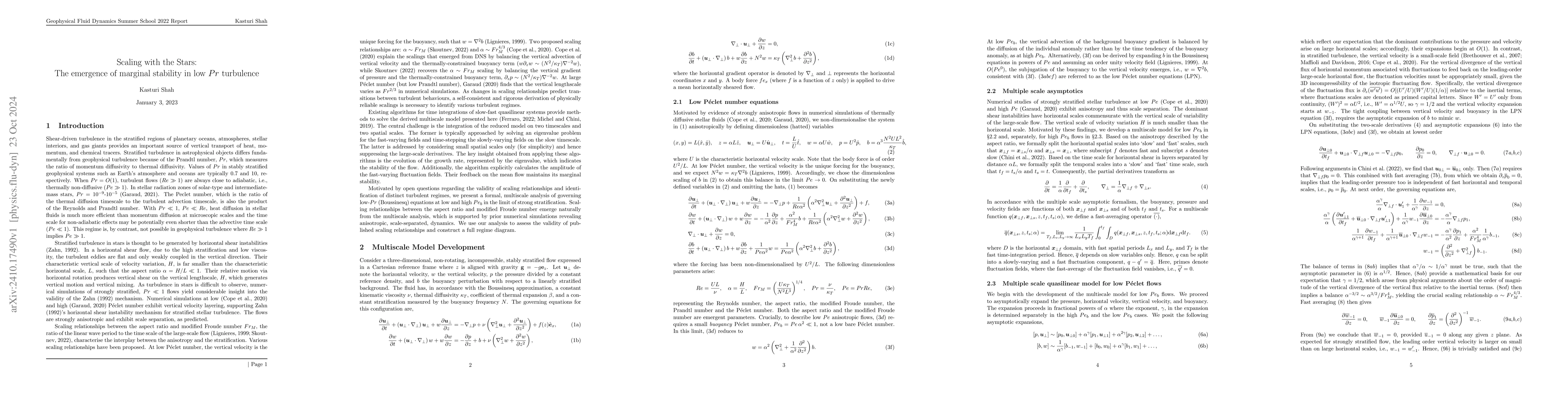 This research explores the dynamics of low Prandtl number turbulence, essential for understanding the transport processes in stellar and planetary interiors. The study identifies regimes of behavior through multiscale analysis and demonstrates the approach to marginal stability using algorithms for solving quasilinear systems in low Prandtl number fluids.
