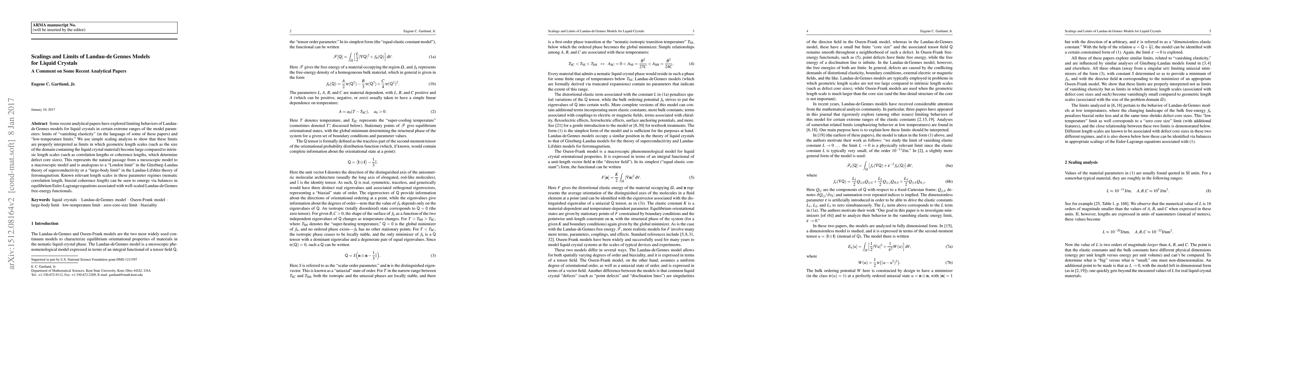 Some recent analytical papers have explored limiting behaviors of Landau-deGennes models for liquid crystals in certain extreme ranges of the model parameters: limits of "vanishing elasticity" (in the language of some of these papers) and "low-temperature limits." We use simple scaling analysis to show that these limits are properly interpreted as limits in which geometric length scales (such as the size of the domain containing the liquid crystal material) become large compared to intrinsic length scales (such as correlation lengths or coherence lengths, which determine defect core sizes). This represents the natural passage from a mesoscopic model to a macroscopic model and is analogous to a "London limit" in the Ginzburg-Landau theory of superconductivity or a "large-body limit" in the Landau-Lifshitz theory of ferromagnetism. Known relevant length scales in these parameter regimes (nematic correlation length, biaxial coherence length) can be seen to emerge via balances in equilibrium Euler-Lagrange equations associated with well-scaled Landau-deGennes free-energy functionals.