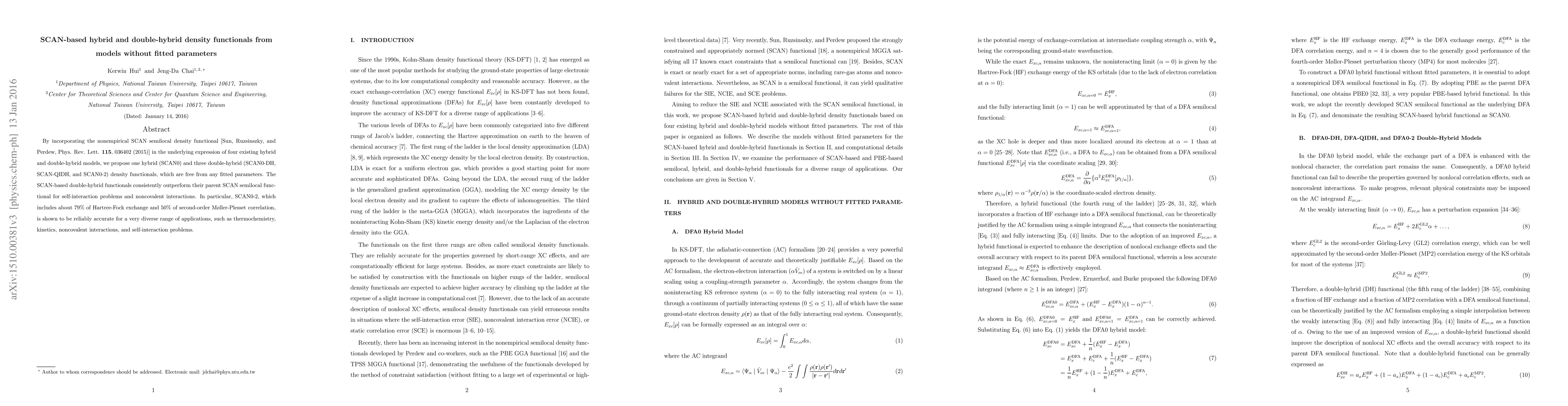 Researchers propose new density functionals that eliminate fitted parameters, showing improved performance in self-interaction problems and noncovalent interactions. Their double-hybrid functional outperforms its parent SCAN semilocal functional in various applications.