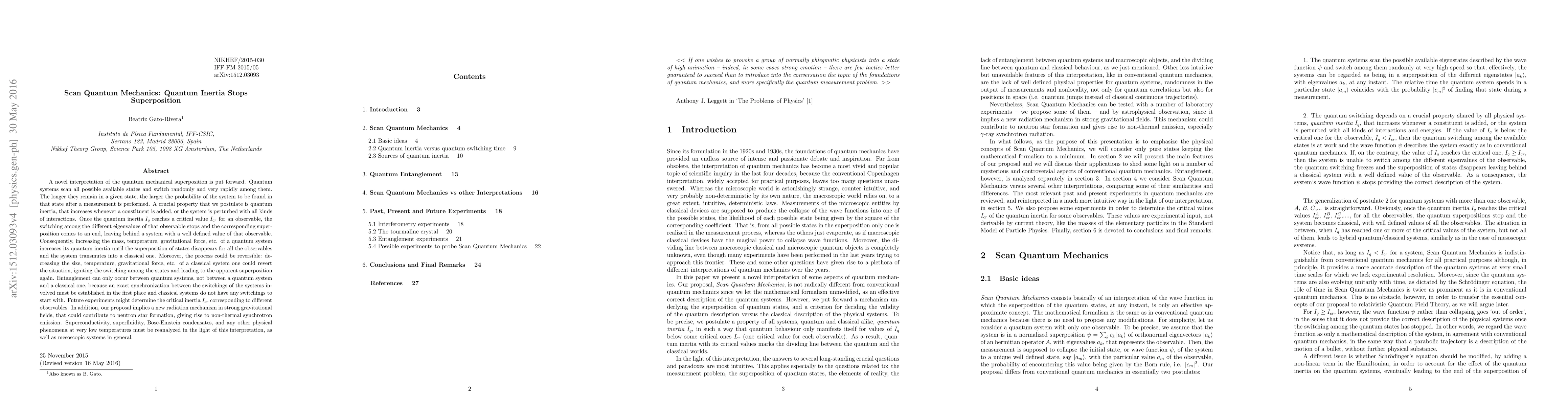 This paper proposes a novel interpretation of quantum superposition, suggesting that quantum systems rapidly switch between states until quantum inertia reaches a critical value, halting superposition and transitioning the system to classical behavior. This inertia increases with mass, temperature, and gravitational force, potentially reversing the process under certain conditions.