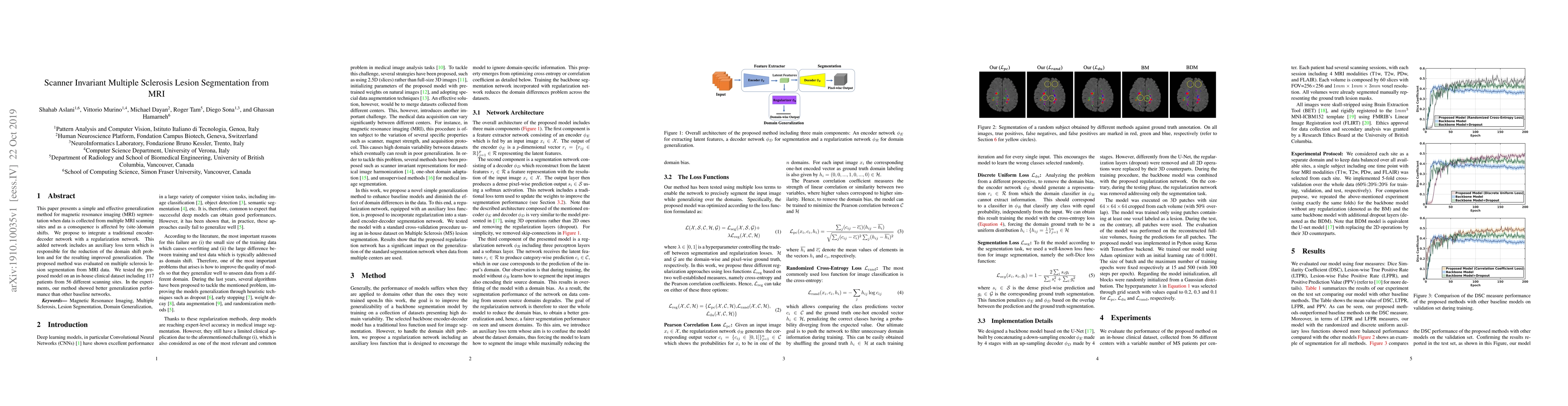 This paper proposes a method combining an encoder-decoder network with a regularization network to improve MRI segmentation across multiple scanning sites, achieving better generalization performance than baseline models. The method was tested on a dataset from 117 patients across 56 sites, demonstrating superior results in segmenting multiple sclerosis lesions.