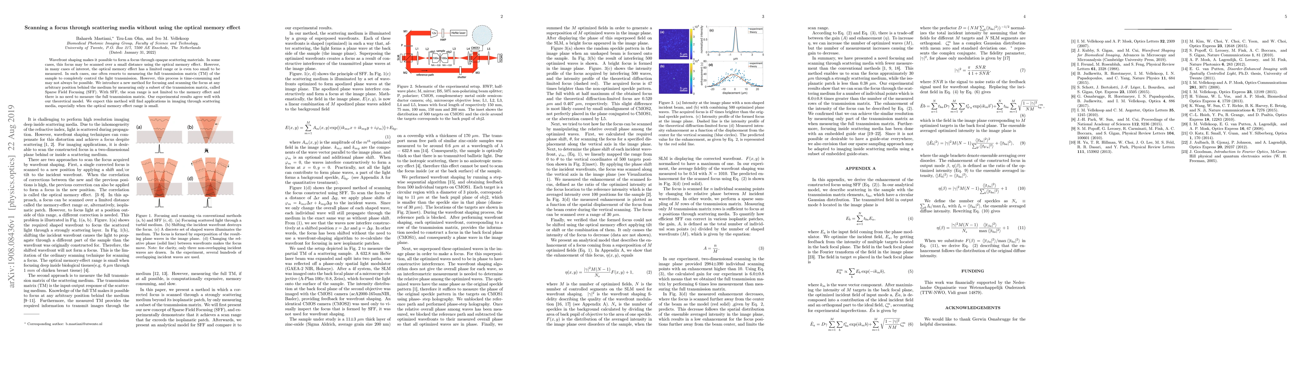 This paper introduces Sparse Field Focusing (SFF) to create and scan a focus through scattering media without the need for the optical memory effect or full transmission matrix measurement, offering a more efficient method for imaging through scattering materials. Experimental results confirm the effectiveness of SFF, suggesting its potential for practical applications where the optical memory effect is limited.