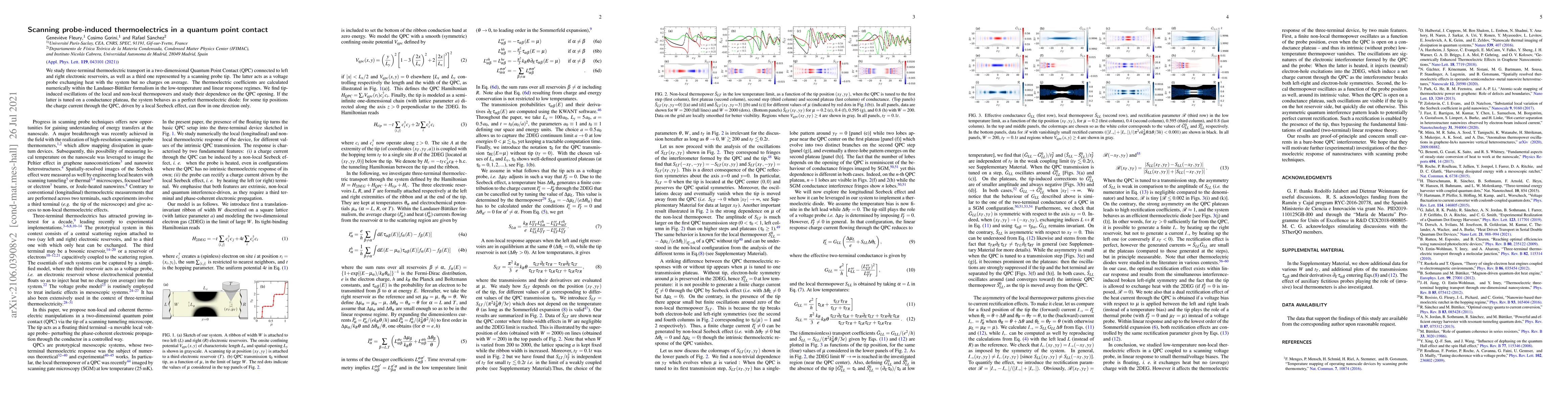 We study three-terminal thermoelectric transport in a two-dimensional Quantum Point Contact (QPC) connected to left and right electronic reservoirs, as well as a third one represented by a scanning probe tip. The latter acts as a voltage probe exchanging heat with the system but no charges on average. The thermoelectric coefficients are calculated numerically within the Landauer-B\"uttiker formalism in the low-temperature and linear response regimes. We find tip-induced oscillations of the local and non-local thermopowers and study their dependence on the QPC opening. If the latter is tuned on a conductance plateau, the system behaves as a perfect thermoelectric diode: for some tip positions the charge current through the QPC, driven by a local Seebeck effect, can flow in one direction only.