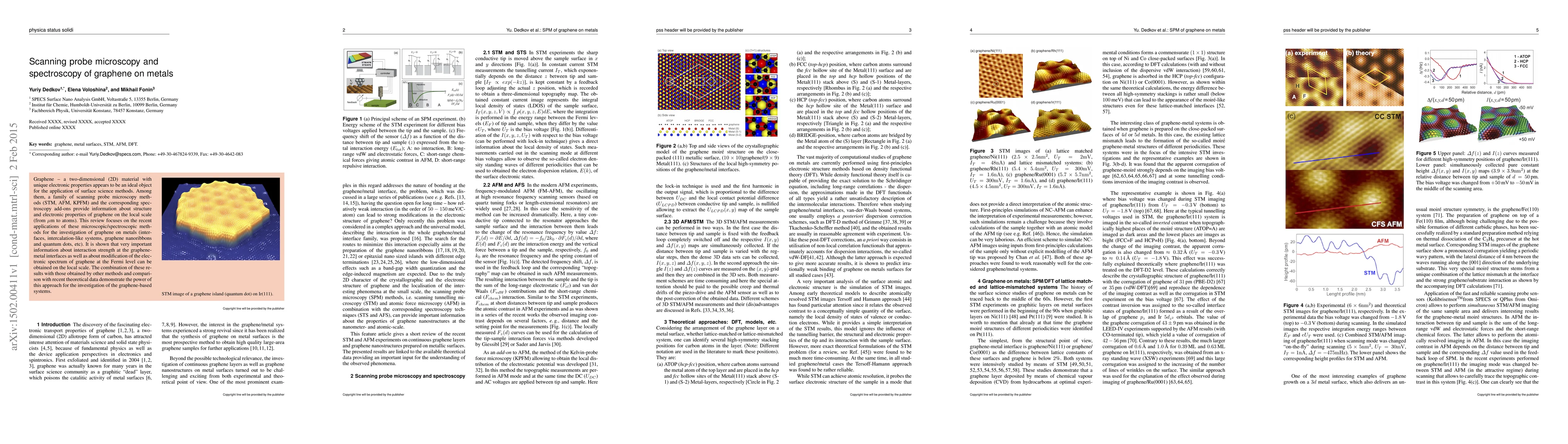 This paper reviews the use of scanning probe microscopy techniques for investigating graphene on metal substrates, highlighting local scale insights into interface interactions and electronic modifications. The study underscores the approach's effectiveness in understanding graphene-based systems, combining experimental results with theoretical data.