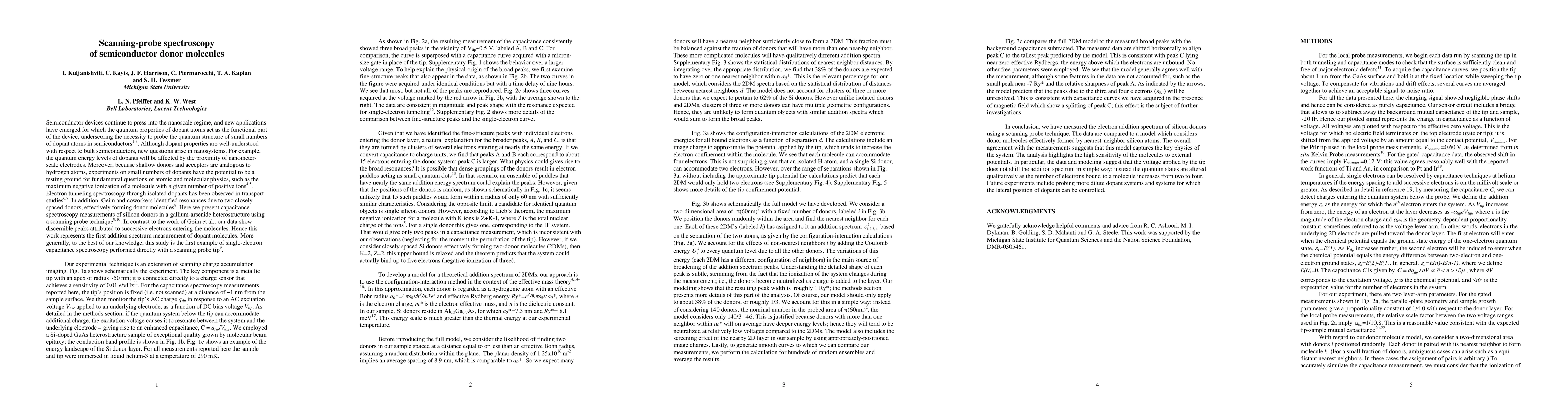 Semiconductor devices continue to press into the nanoscale regime, and new applications have emerged for which the quantum properties of dopant atoms act as the functional part of the device, underscoring the necessity to probe the quantum structure of small numbers of dopant atoms in semiconductors[1-3]. Although dopant properties are well-understood with respect to bulk semiconductors, new questions arise in nanosystems. For example, the quantum energy levels of dopants will be affected by the proximity of nanometer-scale electrodes. Moreover, because shallow donors and acceptors are analogous to hydrogen atoms, experiments on small numbers of dopants have the potential to be a testing ground for fundamental questions of atomic and molecular physics, such as the maximum negative ionization of a molecule with a given number of positive ions[4,5]. Electron tunneling spectroscopy through isolated dopants has been observed in transport studies[6,7]. In addition, Geim and coworkers identified resonances due to two closely spaced donors, effectively forming donor molecules[8]. Here we present capacitance spectroscopy measurements of silicon donors in a gallium-arsenide heterostructure using a scanning probe technique[9,10]. In contrast to the work of Geim et al., our data show discernible peaks attributed to successive electrons entering the molecules. Hence this work represents the first addition spectrum measurement of dopant molecules. More generally, to the best of our knowledge, this study is the first example of single-electron capacitance spectroscopy performed directly with a scanning probe tip[9].