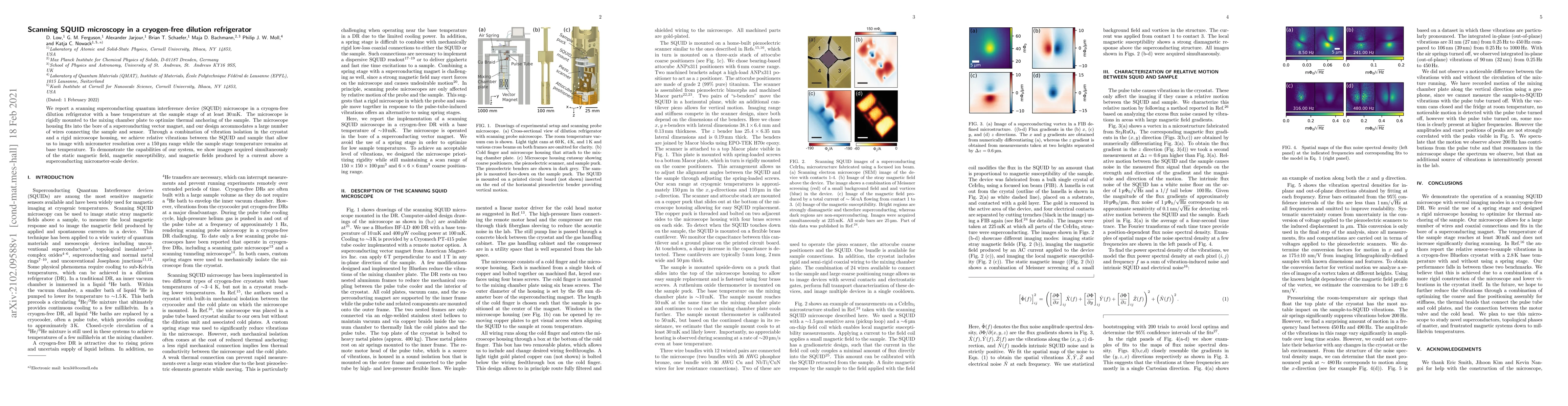 This research presents a scanning SQUID microscope within a cryogen-free dilution refrigerator achieving 30 mK base temperatures. It demonstrates micrometer-resolution imaging over a 150 µm range, showcasing its ability to simultaneously capture static magnetic fields, magnetic susceptibility, and fields from superconducting devices.