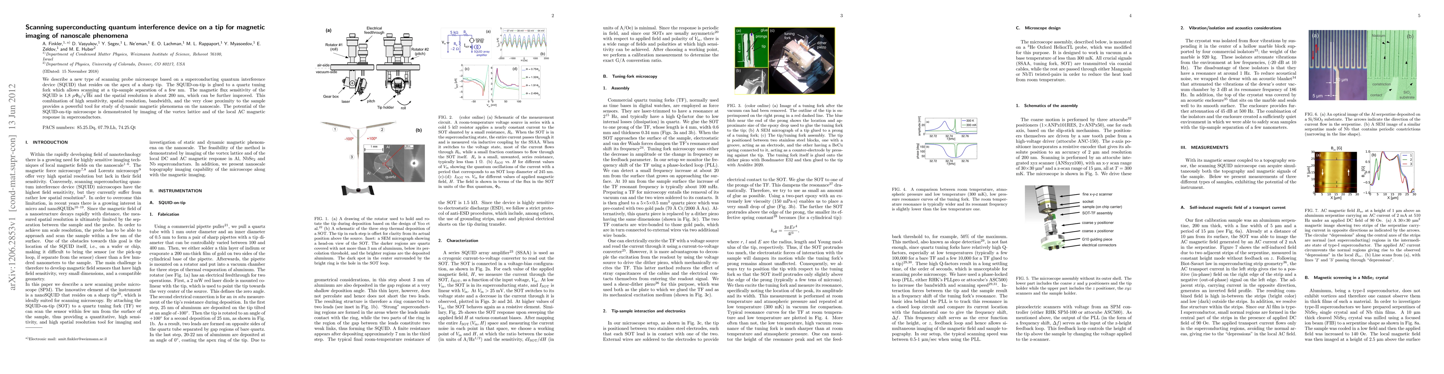 This paper introduces a novel scanning probe microscope utilizing a SQUID on a sharp tip, enabling high-resolution magnetic imaging at nanoscale separations. The device demonstrates sensitivity and resolution suitable for studying dynamic magnetic phenomena, as evidenced by imaging of superconductor vortex lattices and local AC magnetic responses.