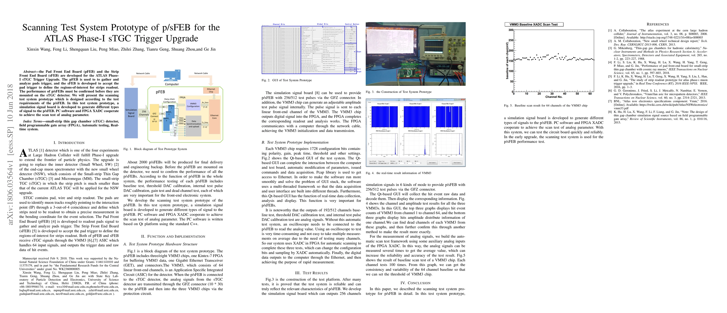 The Pad Front End Board (pFEB) and the Strip Front End Board (sFEB) are developed for the ATLAS Phase-I sTGC Trigger Upgrade. The pFEB is used to to gather and analyze pads trigger, and the sFEB is developed to accept the pad trigger to define the regions-of-interest for strips readout. The performance of p/sFEBs must be confirmed before they are mounted on the sTGC detector. We will present the scanning test system prototype which is designed according to the test requirements of the p/sFEB. In this test system prototype, a simulation signal board is developed to generate different types of signal to the p/sFEB. PC software and FPGA XADC cooperate to achieve the scan test of analog parameter.