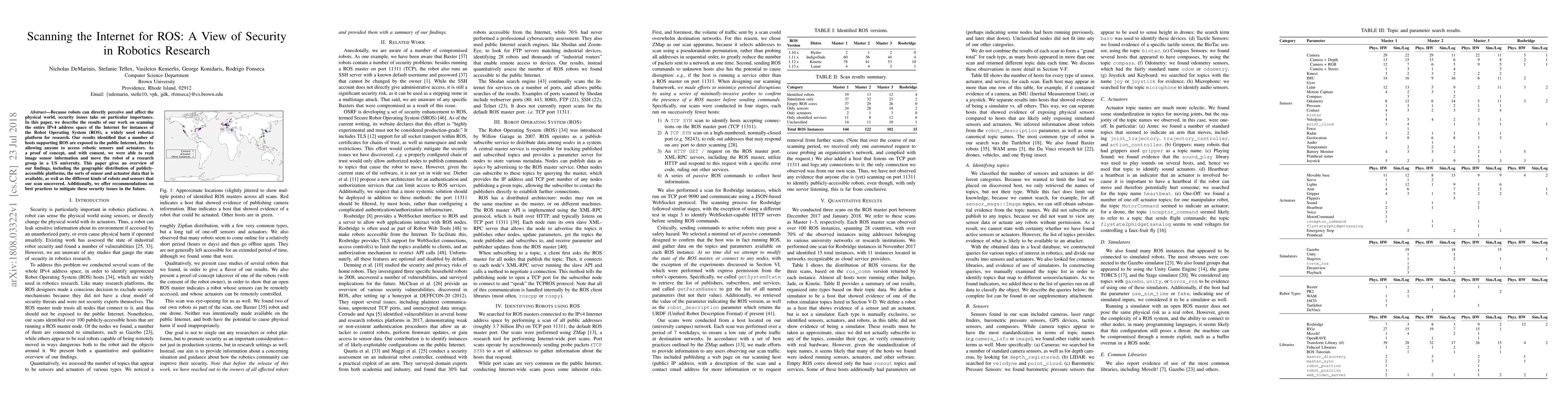 Because robots can directly perceive and affect the physical world, security issues take on particular importance. In this paper, we describe the results of our work on scanning the entire IPv4 address space of the Internet for instances of the Robot Operating System (ROS), a widely used robotics platform for research. Our results identified that a number of hosts supporting ROS are exposed to the public Internet, thereby allowing anyone to access robotic sensors and actuators. As a proof of concept, and with consent, we were able to read image sensor information and move the robot of a research group in a US university. This paper gives an overview of our findings, including the geographic distribution of publicly-accessible platforms, the sorts of sensor and actuator data that is available, as well as the different kinds of robots and sensors that our scan uncovered. Additionally, we offer recommendations on best practices to mitigate these security issues in the future.
