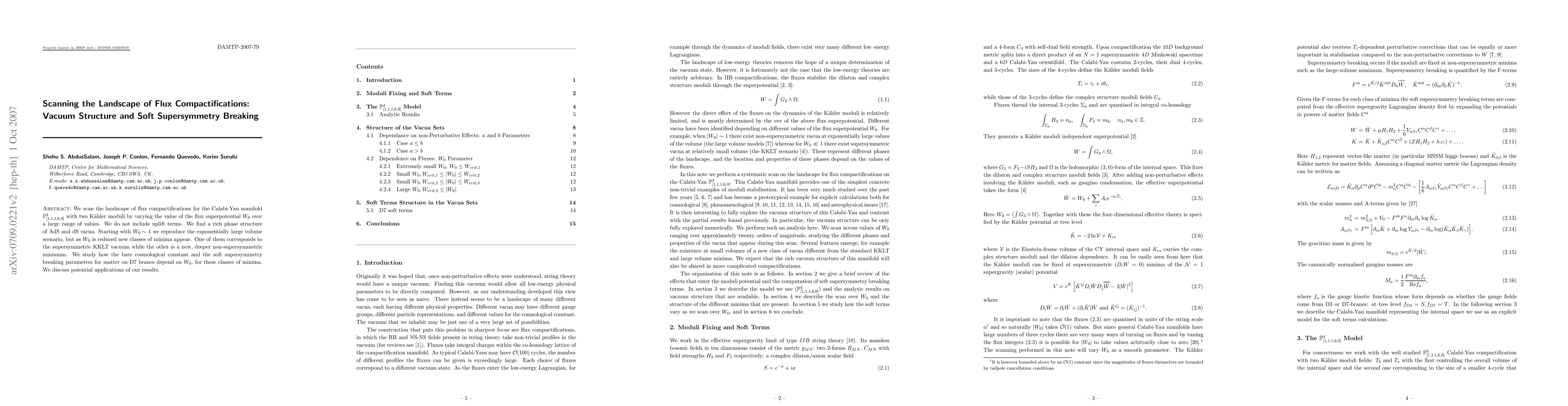 We scan the landscape of flux compactifications for the Calabi-Yau manifold $\mathbb{P}^4_{[1,1,1,6,9]}$ with two K\" ahler moduli by varying the value of the flux superpotential $W_0$ over a large range of values. We do not include uplift terms. We find a rich phase structure of AdS and dS vacua. Starting with $W_0\sim 1$ we reproduce the exponentially large volume scenario, but as $W_0$ is reduced new classes of minima appear. One of them corresponds to the supersymmetric KKLT vacuum while the other is a new, deeper non-supersymmetric minimum. We study how the bare cosmological constant and the soft supersymmetry breaking parameters for matter on D7 branes depend on $W_0$, for these classes of minima. We discuss potential applications of our results.