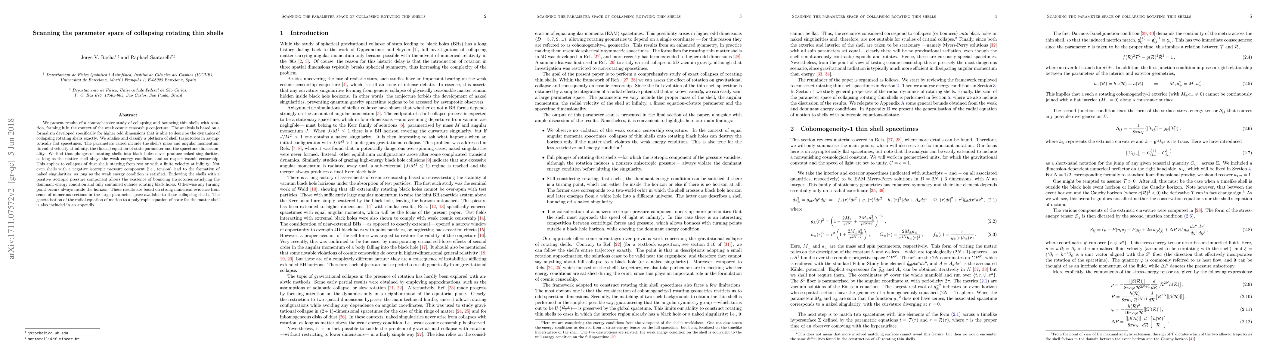 We present results of a comprehensive study of collapsing and bouncing thin shells with rotation, framing it in the context of the weak cosmic censorship conjecture. The analysis is based on a formalism developed specifically for higher odd dimensions that is able to describe the dynamics of collapsing rotating shells exactly. We analise and classify a plethora of shell trajectories in asymptotically flat spacetimes. The parameters varied include the shell's mass and angular momentum, its radial velocity at infinity, the (linear) equation-of-state parameter and the spacetime dimensionality. We find that plunges of rotating shells into black holes never produce naked singularities, as long as the matter shell obeys the weak energy condition, and so respect cosmic censorship. This applies to collapses of dust shells starting from rest or with a finite velocity at infinity. Not even shells with a negative isotropic pressure component (i.e., tension) lead to the formation of naked singularities, as long as the weak energy condition is satisfied. Endowing the shells with a positive isotropic pressure component allows the existence of bouncing trajectories satisfying the dominant energy condition and fully contained outside rotating black holes. Otherwise any turning point occurs always inside the horizon. These results are based on strong numerical evidence from scans of numerous sections in the large parameter space available to these collapsing shells. The generalisation of the radial equation of motion to a polytropic equation-of-state for the matter shell is also included in an appendix.