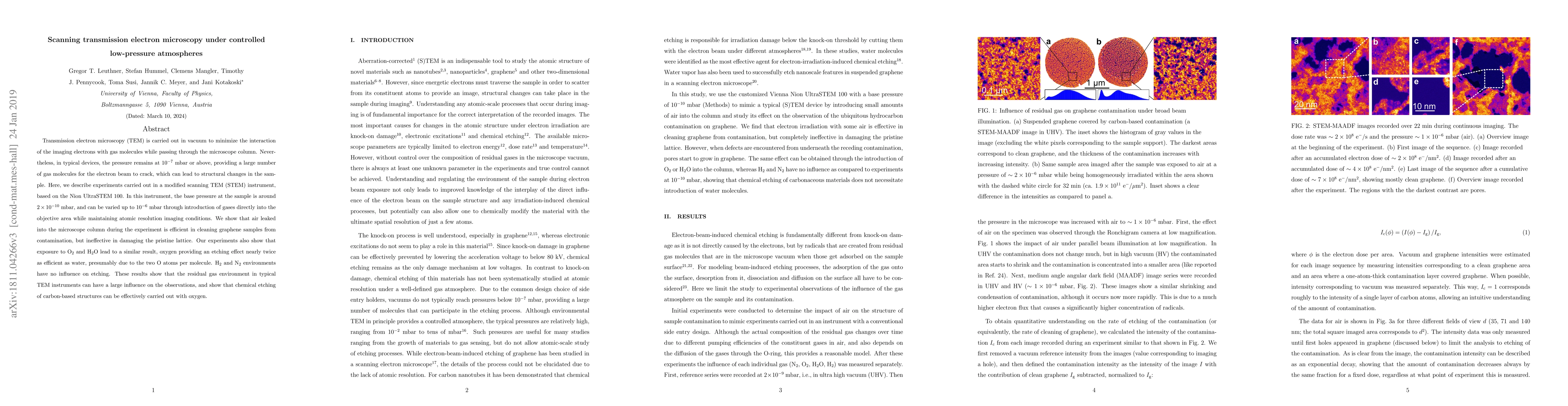 Researchers used a modified TEM instrument to study the effects of atmospheric gases on graphene samples at very low pressures, finding that oxygen is more efficient than water in etching carbon-based structures.