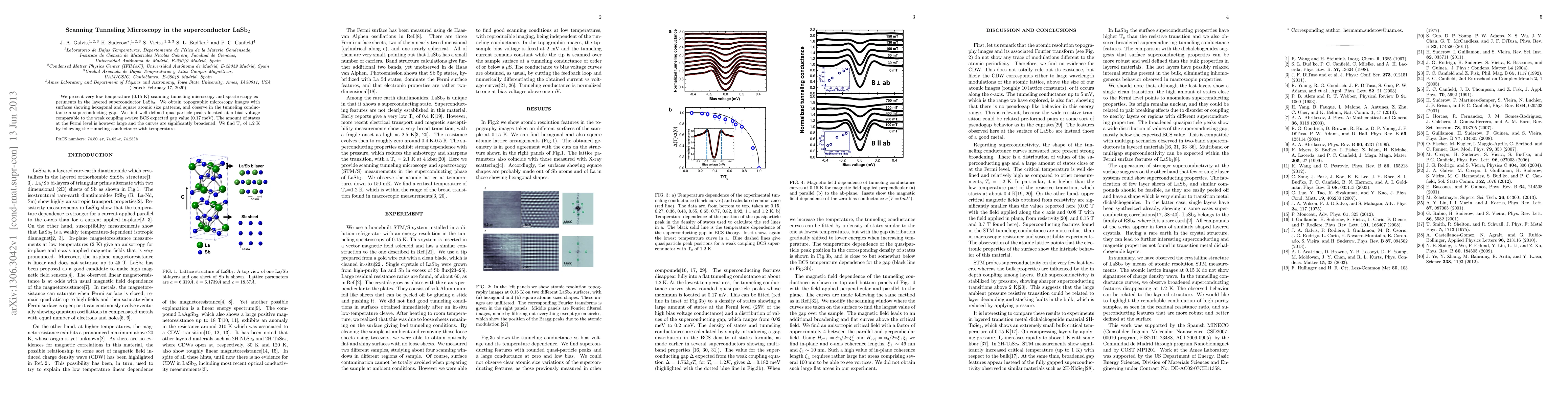 This study uses scanning tunneling microscopy to investigate the superconductor LaSb$_2$ at 0.15 K, revealing hexagonal and square atomic patterns and a superconducting gap with quasiparticle peaks near the BCS gap value, though Fermi level states are broadened. The critical temperature (T$_c$) is determined to be 1.2 K.